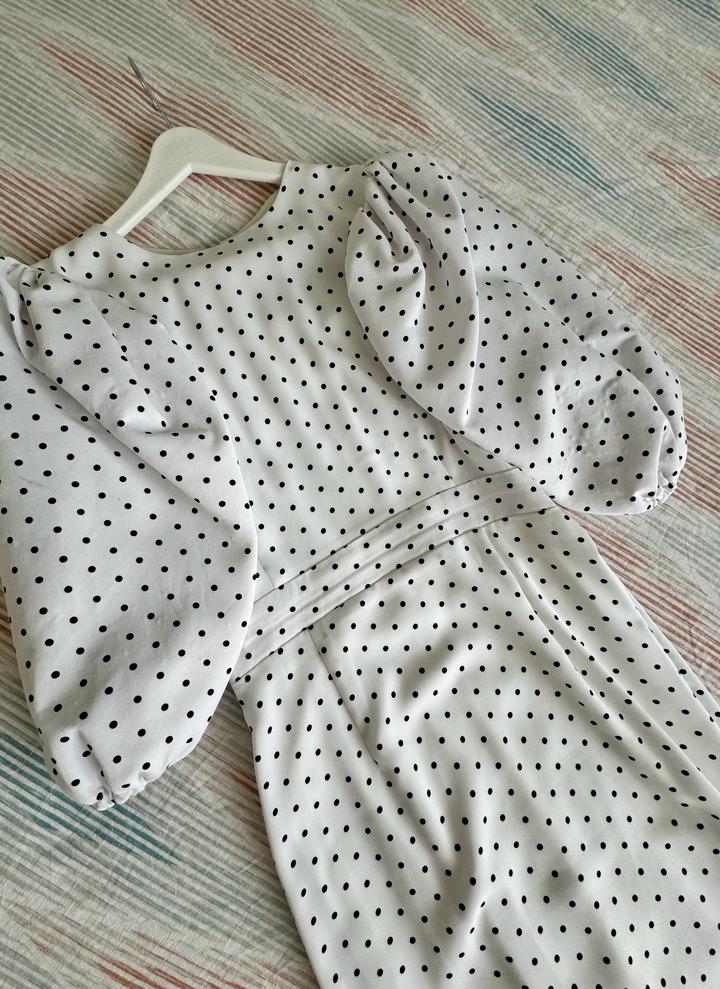 Белое платье в горошек, в длине миди, идеальном состояний, размер S полноценный 42-44 р. Артикул: 408505