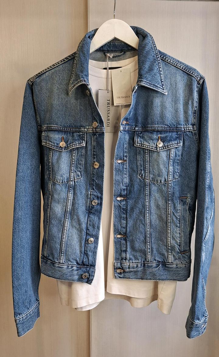 Продам джинсовую куртку от бренда Trussardi, оригинальное изделие с защитой голограммы, заводским номером и т.д., новая с этикетками! Стоимость официального сайта на такую куртку в районе 200.000! Небольшой торг, уместен! Куртка выполнена из качественной, плотной джинсовой ткани 100% хлопка, идеальные линии в пошиве, брендированная фурнитура Trussardi, и кожаная нашивка как и положено бренду по низу куртку! Размер 46/48, возможно и 50, без животика! Артикул: 408550