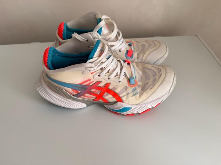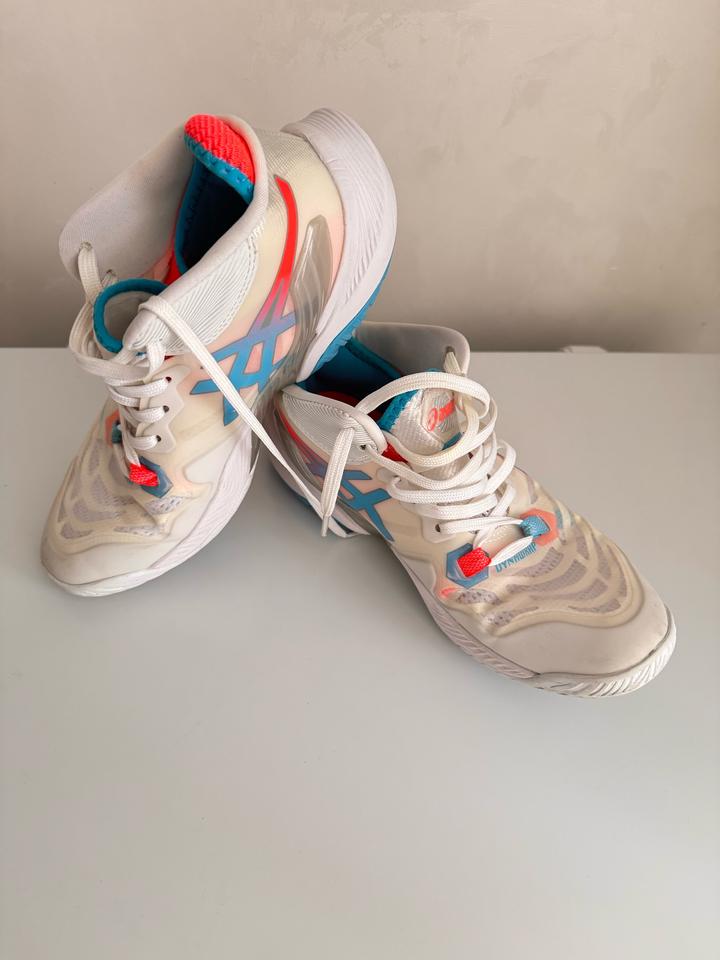Волейбольные кроссовки ASICS metarise в расцветке Blue storm в отличном состоянии Размер (на этикетке)240 см, подойдет на 38 Артикул: 409597
