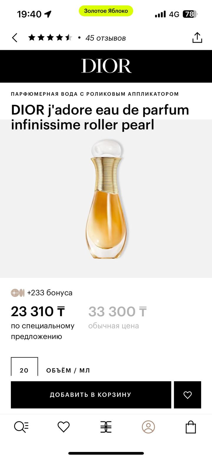 Продам DIOR j'adore eau de parfum infinissime roller pearl. Коробки нет Артикул: 410111