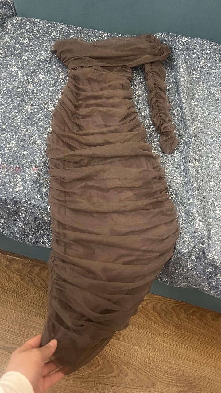Коричневое платье на одно плечо Размер s Артикул: 410315