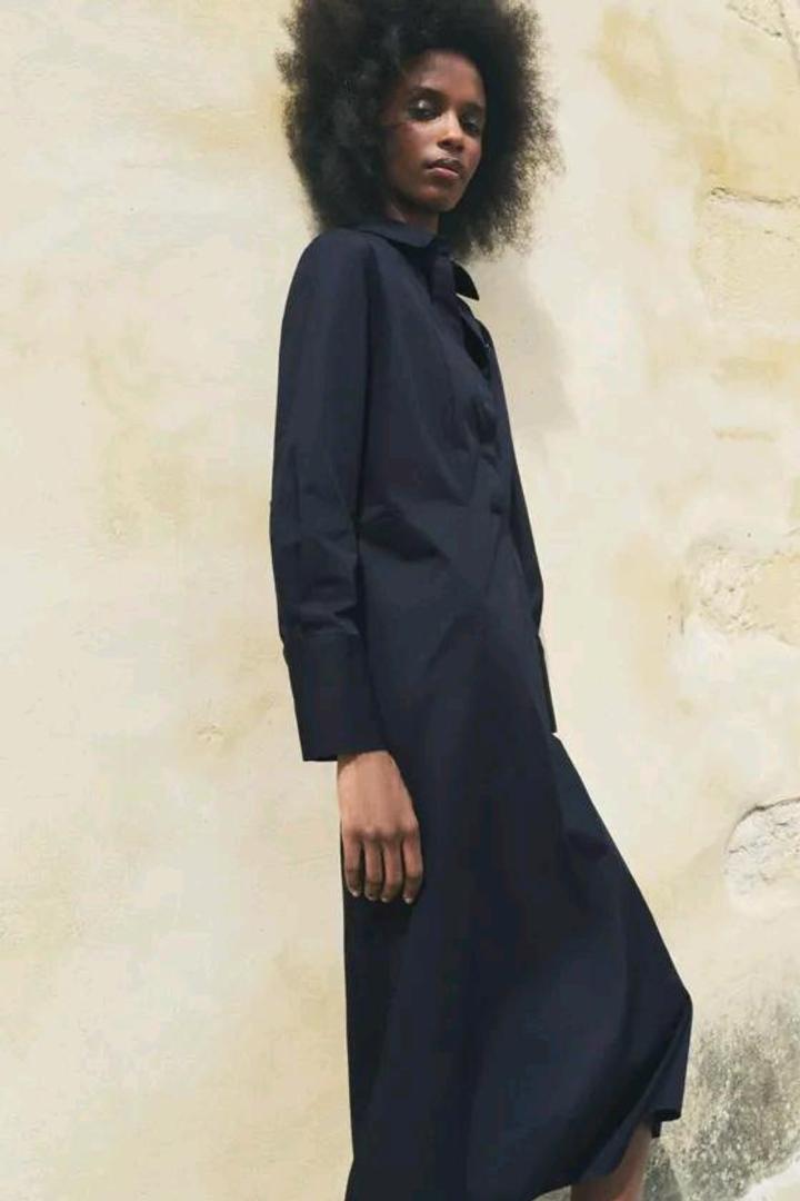 Платье миди из поплина с воротником и с длинными рукавами. Манжеты застегивается на пуговицы под планкой. Материал хлопок. Размер М. Новый без бирок. Артикул: 410665