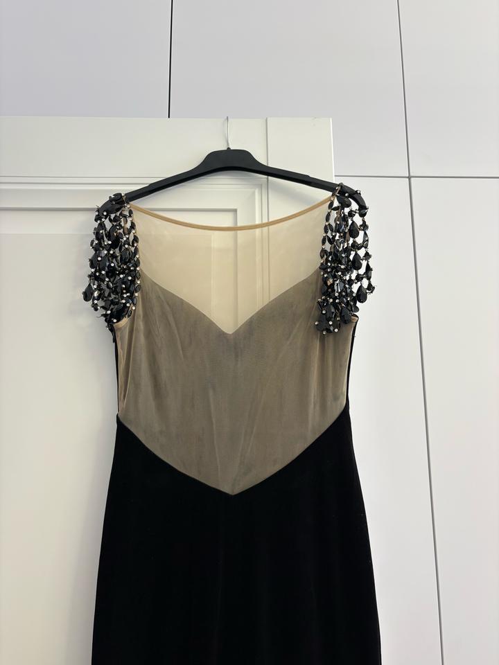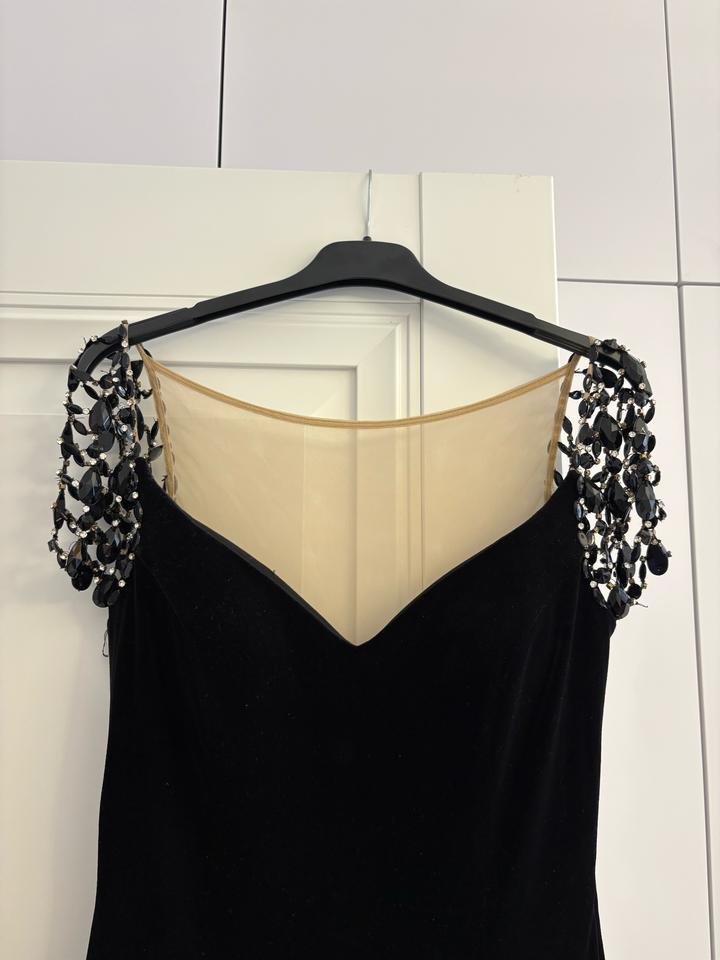 Продам вечернее черное бархатное платье от бренда Alfabeta. Спереди (справа) имеется вырез. Есть подклад. Есть чашки. Сидит по фигуре. Сзади до пояса телесный подклад (фото прилагается). Ткань приятная,не мнется, не собирает пыль. Производство турция. Одевалось 1 раз. Артикул: 410701