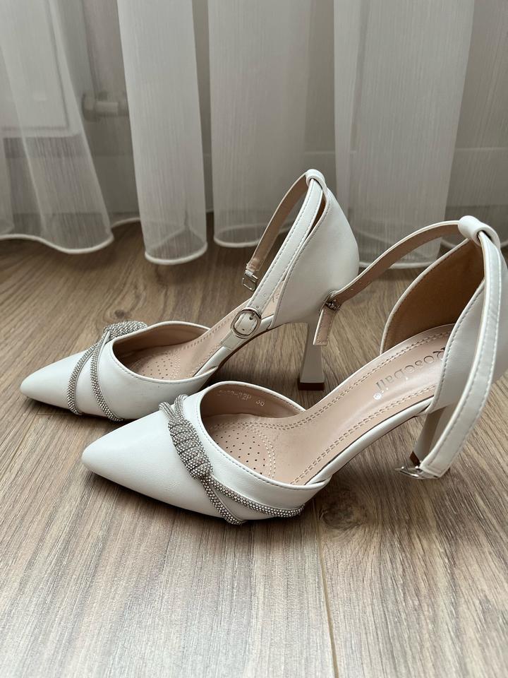 Туфли одевались всего один раз на узату той дочери . Состояние идеальное . Размер 38 . Колодка очень удобная . Хороший вариант на свадьбу , узату той либо на выпускной вечер . Артикул: 411857