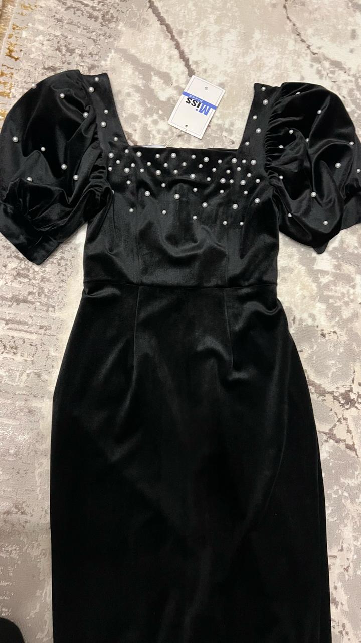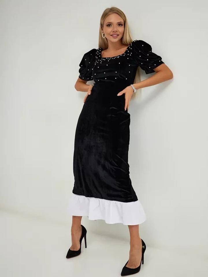 Бархатное черное платье с белыми жемчугами. Размер 42. Артикул: 412087