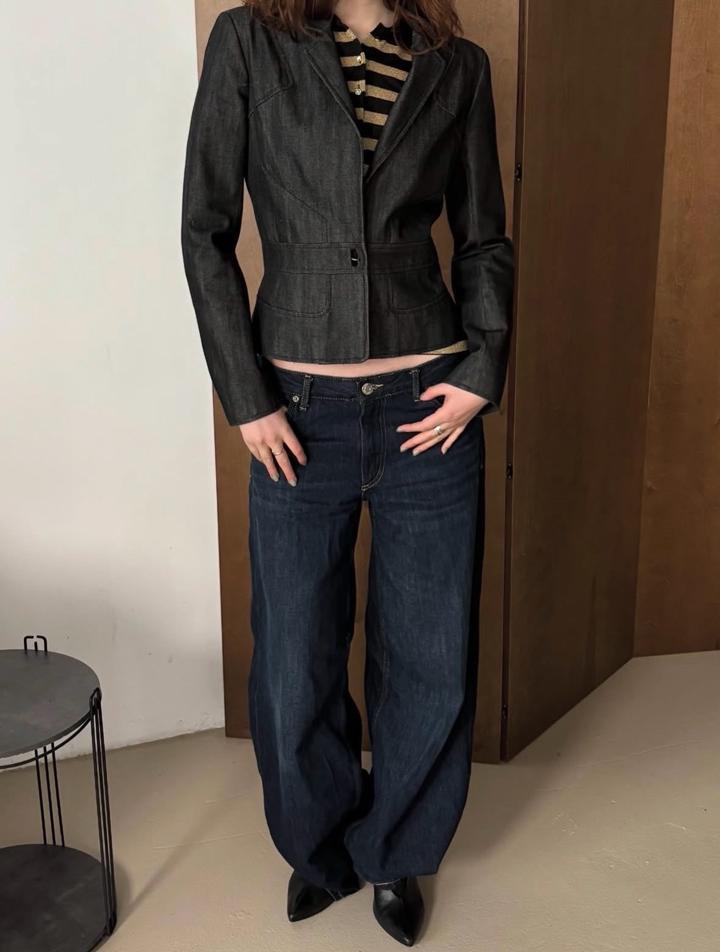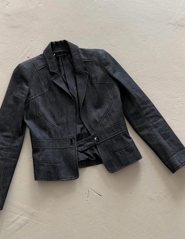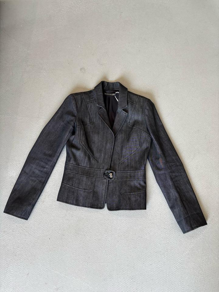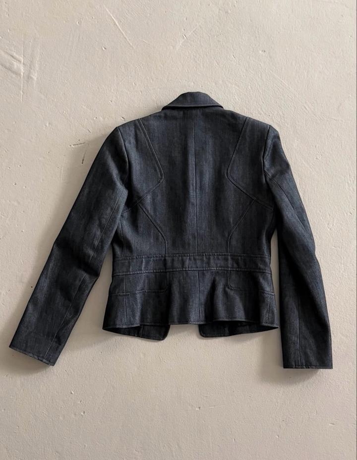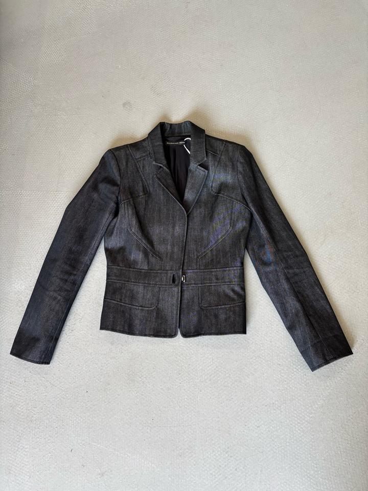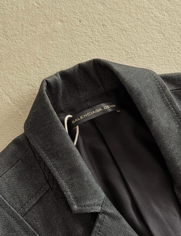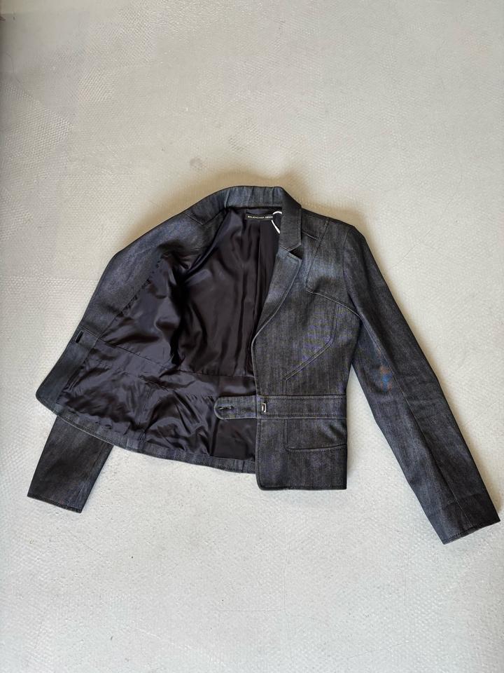 BALENCIAGA GHESQUIRE ERA 00’s-10’s Жакет Balenciaga. Приталенный, из плотной джинсы, с застежкой twist lock и с четкими плечевыми линиями Плечи 42 см Длина рукава 42 см Длина 61 см Модель: рост 170, ог 81, от 66, об 94 Артикул: 412409