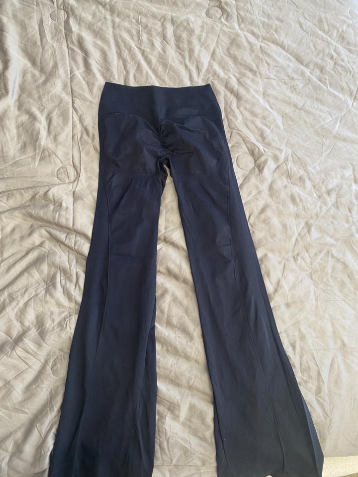 Черные спортивные лосины клеш, с пушап эффектом ✨ 1 раз надевались🙏🏻 Размер L - но подходит на S/M/L В подарок положу черный кроп топ, идет без чашек 🎁✨ Артикул: 412704