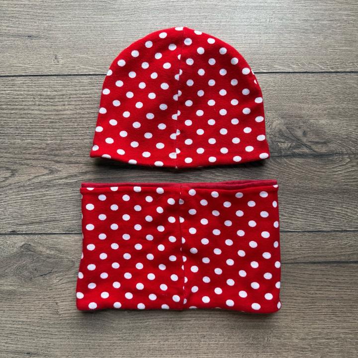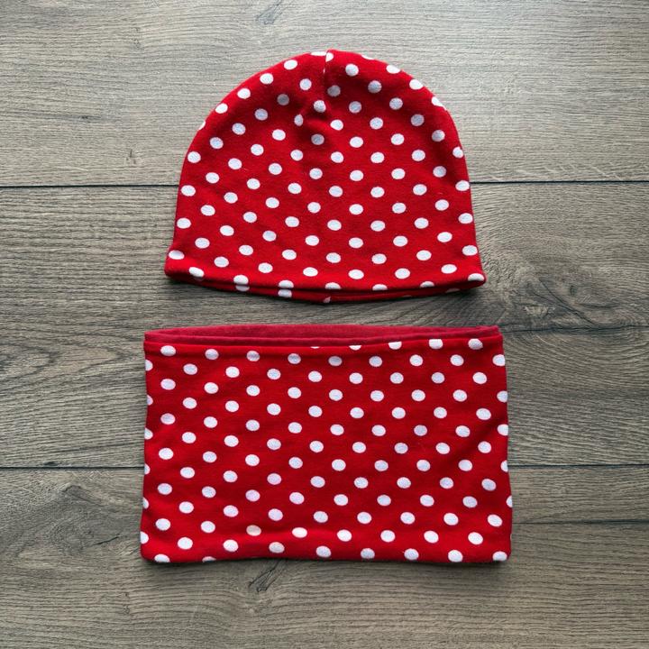Шапочка со снудом красного цвета, либо красного в белый горошек. На девочку годик- полтора Артикул: 413054