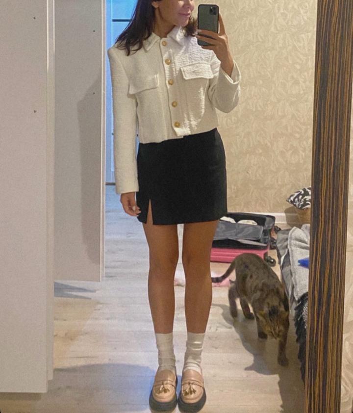 Короткий жакет по типу твидового, Zara. Носила его редко, очень аккуратно. Пятен нет. Артикул: 413523