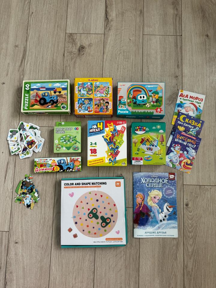 Игры на возраст 2+. Пазлы, домино, комикс, книжки, мемо, балансир, тетрис. Все в отличном состоянии, игры некоторые не открывали даже Артикул: 413870