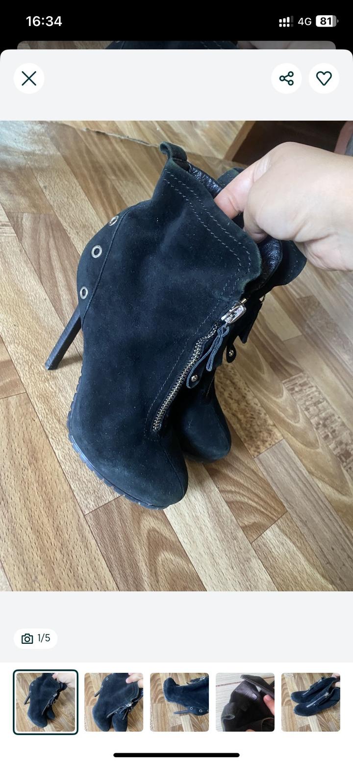 Продам полусапожки из натуральной замши. Размер 36. Фирма basconi. Удобные несмотря на высокий каблук. Артикул: 414047