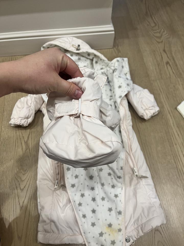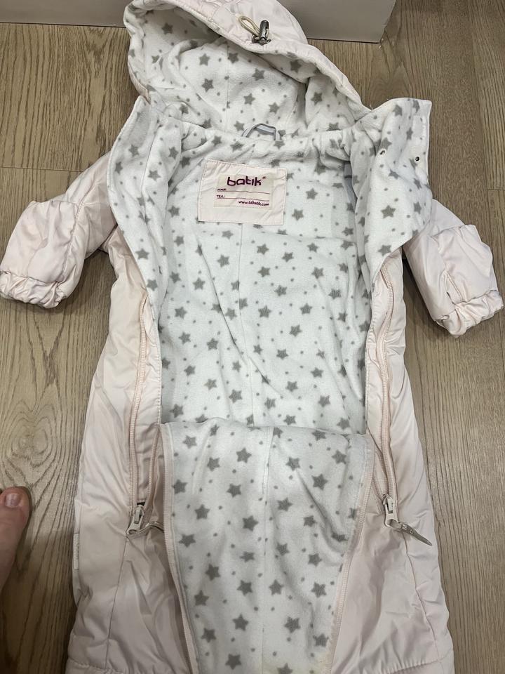 Комбинезон слитный, два замка спереди, и на ножках тоже, светло нежный розовый цвет. Артикул: 414459
