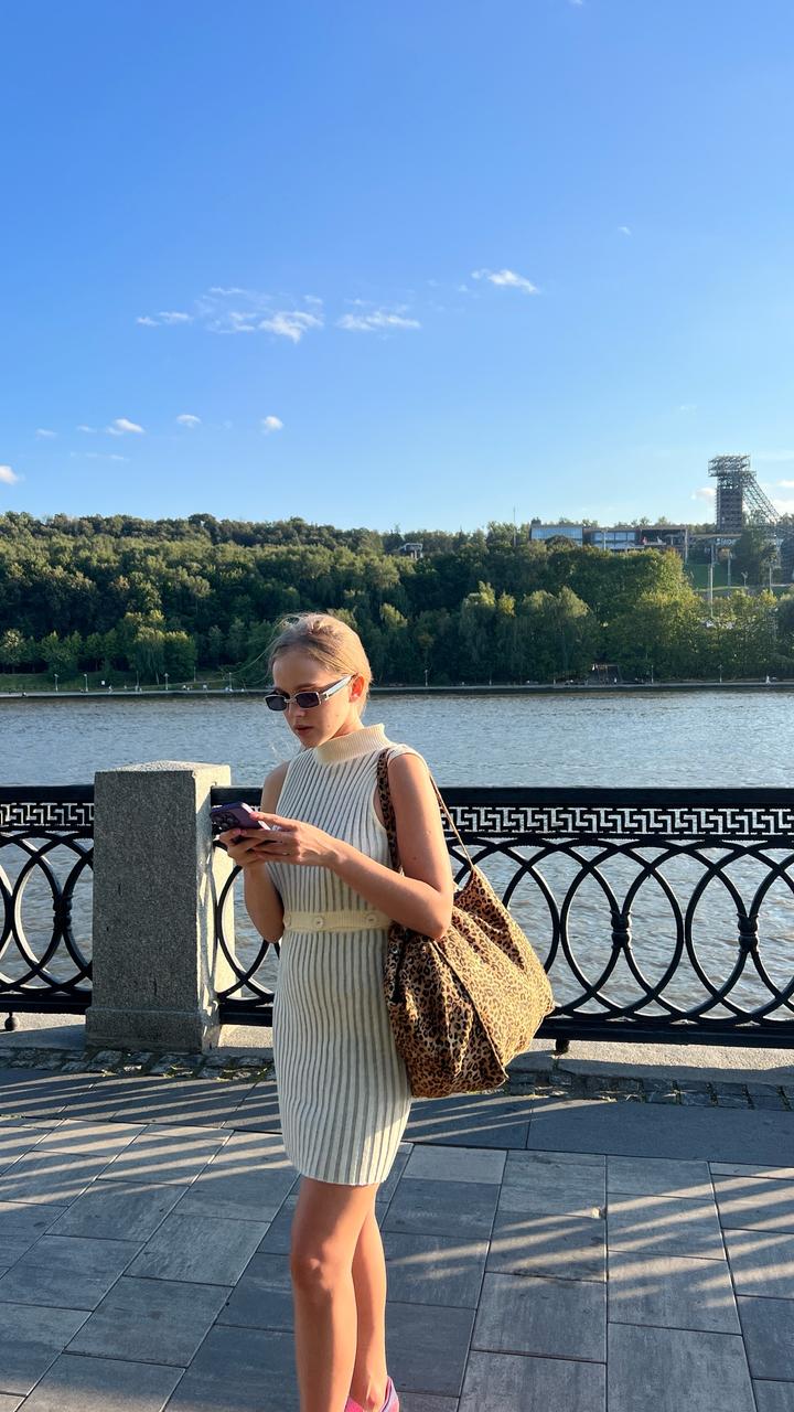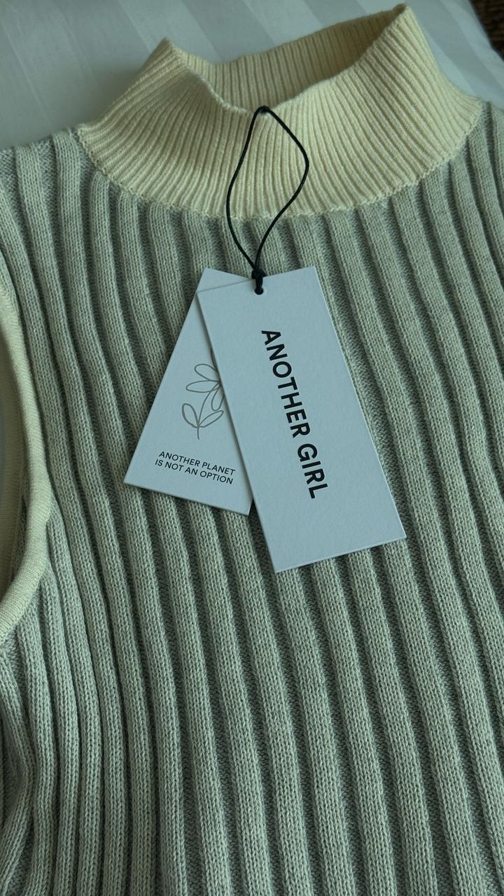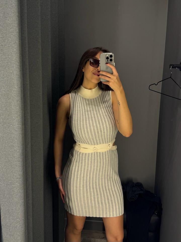Бежево-серое платье-конструктор ливеопульского бренда Another girl. Можно носить по отдельности, застегивать на несколько пуговиц или на все. Артикул: 415115