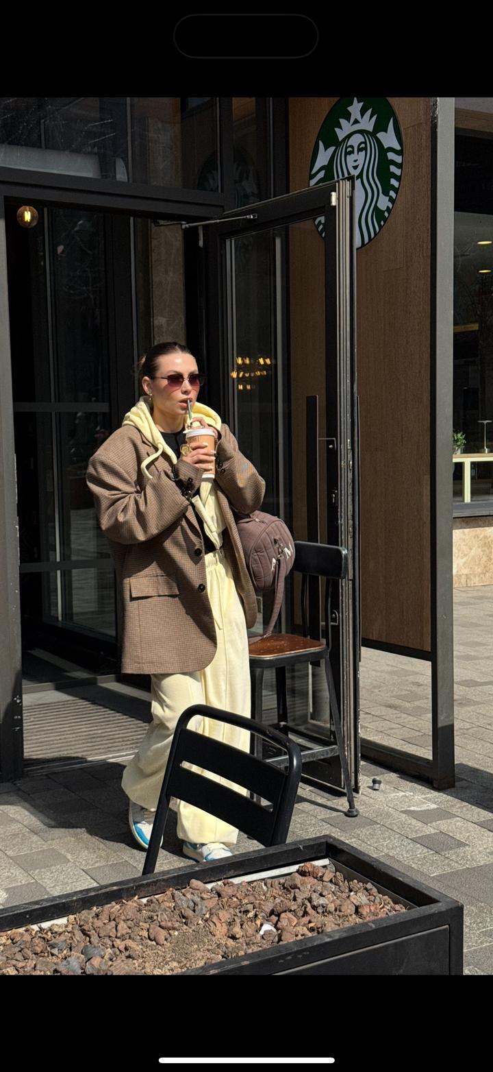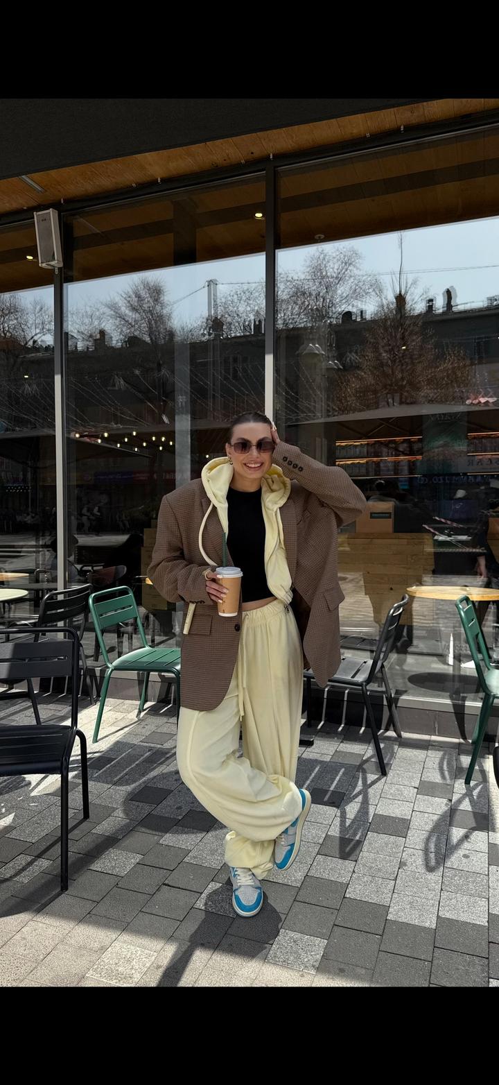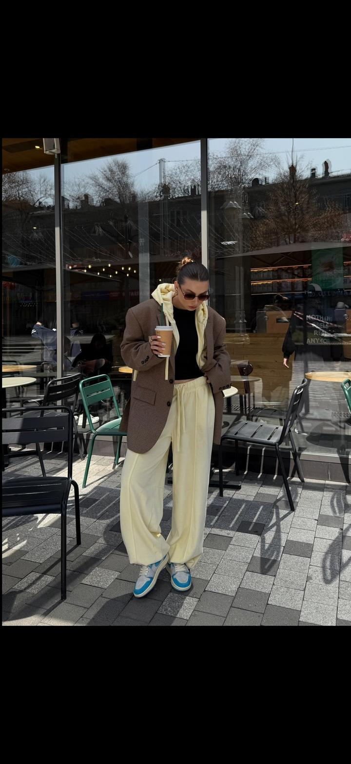 Костюм от российского бренда Lion Grey Велюр, красивый сливочный цвет 1 выход Размер на S/M Брюки длинные, подойдет до 180см, по желанию можно укоротить Стоил 39.000₽ Артикул: 415218