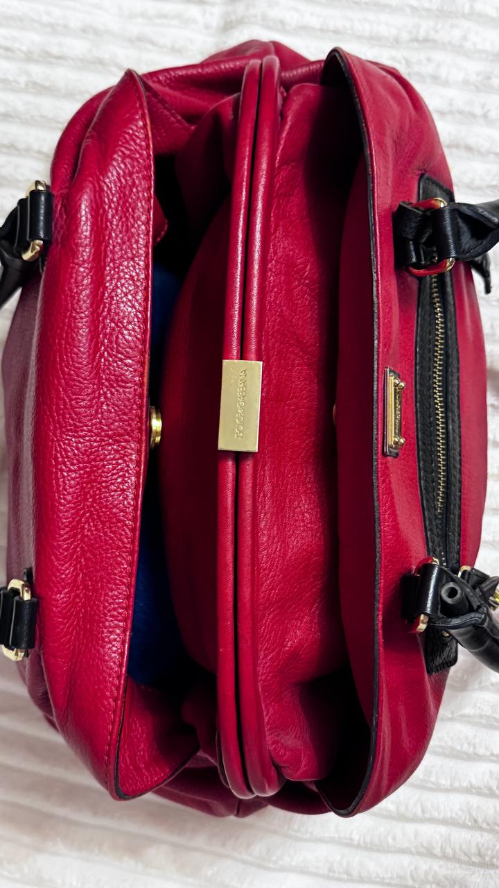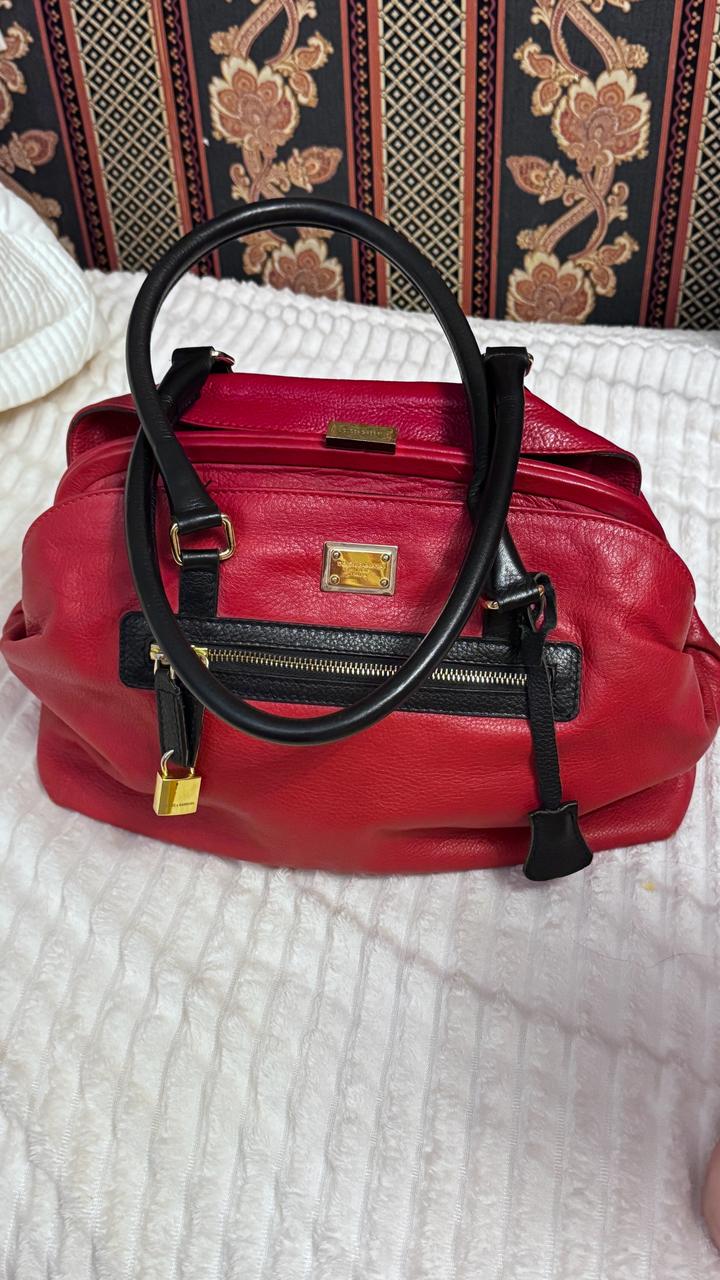 Сумка выполнена из натуральной кожи, имеет три отделения и кармашек на замке. Сумка красного насыщенного цвета с верными ручками и золотистой фурнитурой. Оригиналтный логотип на сумке на фото хорошо видны Артикул: 415268