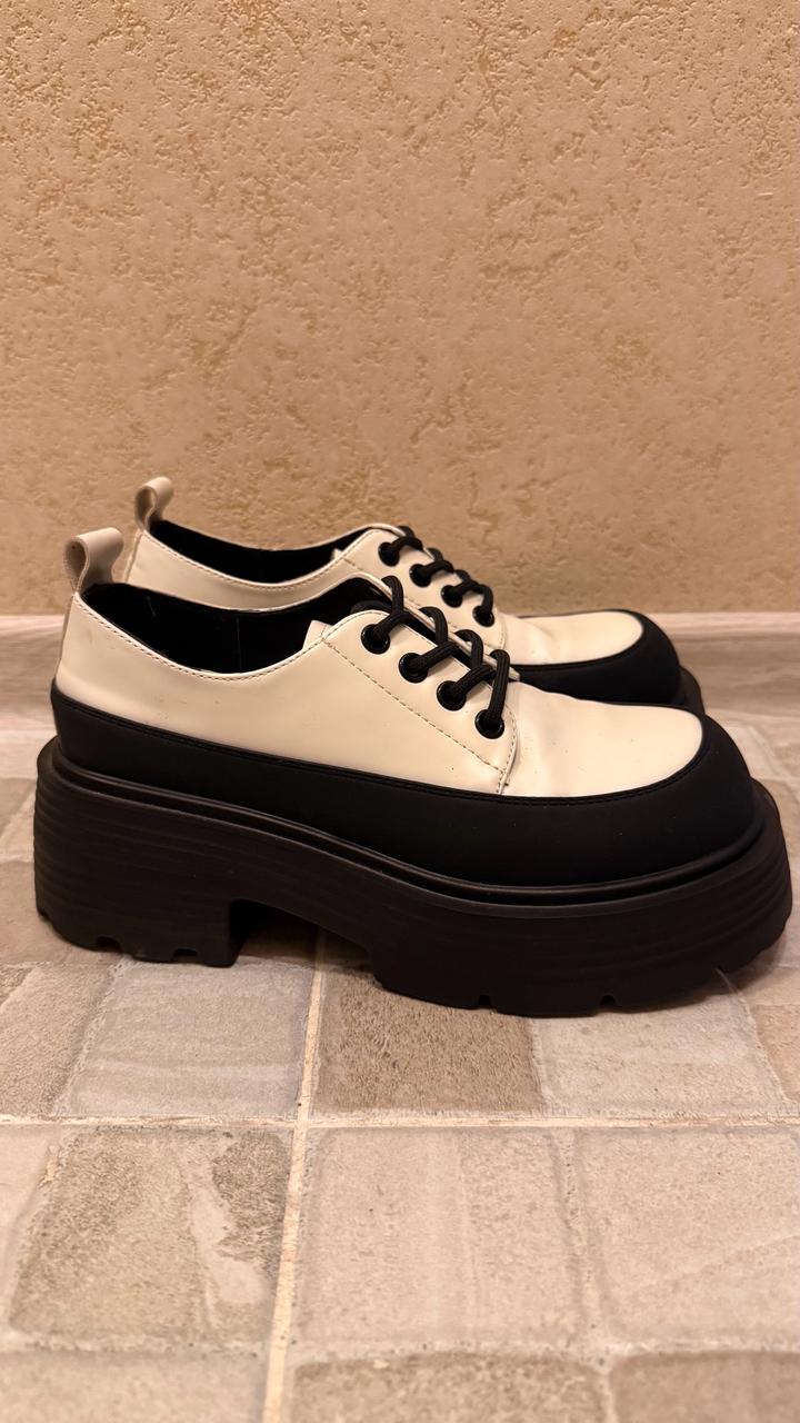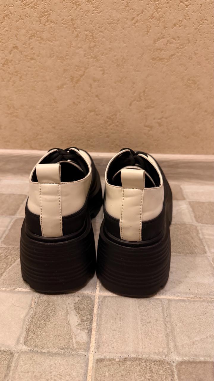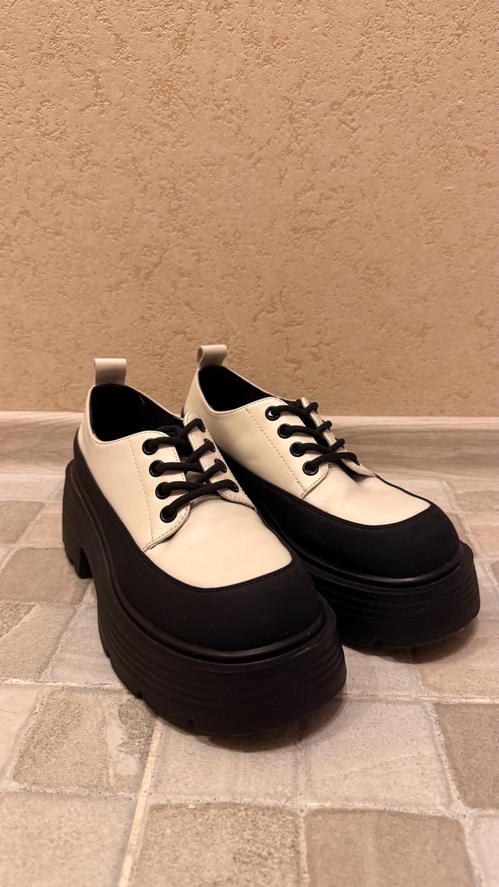Черно-белые лоферы, покупала в Josiny. Носились 2–3 раза. Размер 230. Артикул: 415394