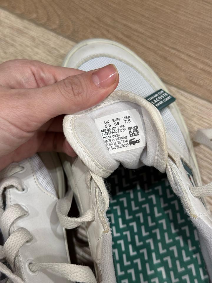 Кеды Lacoste, 39, подойдет на 38. Одевала пару раз, нога выросла после родов, не подходит( Артикул: 415422