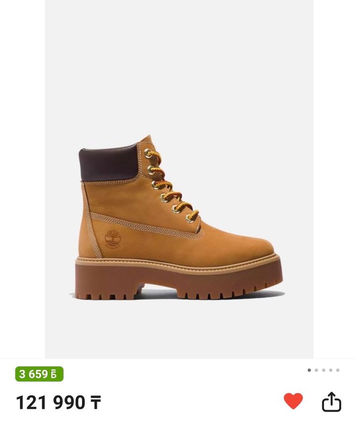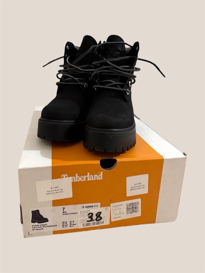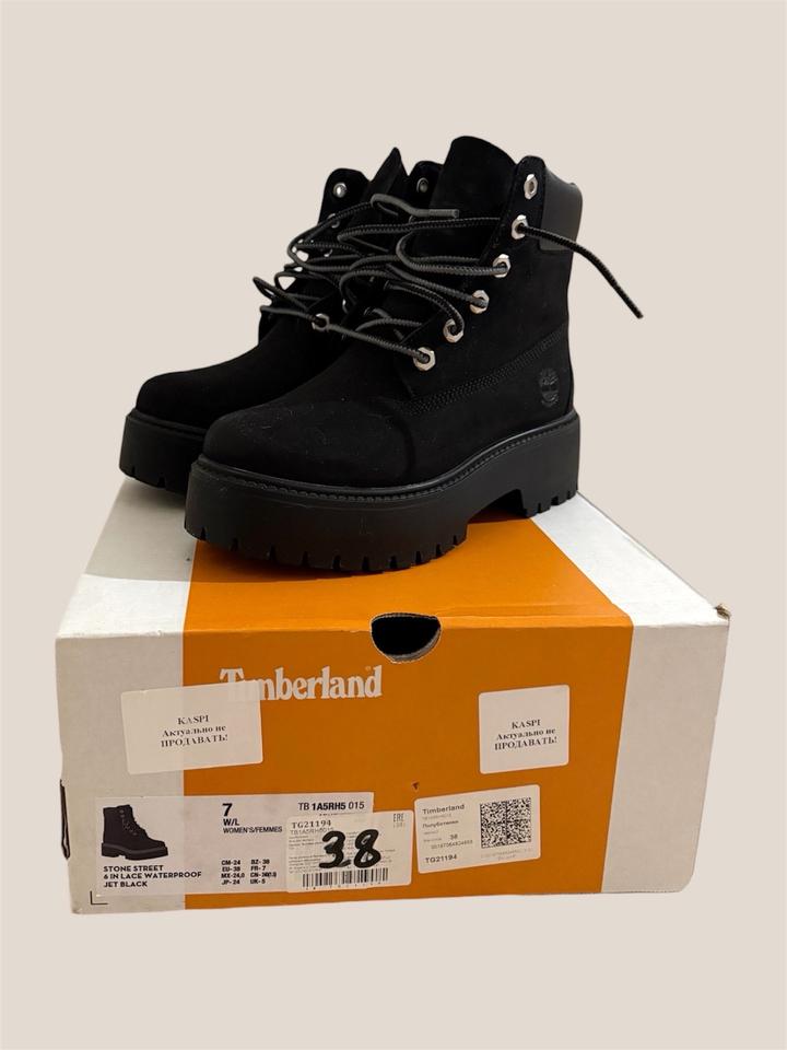 Описание из магазина: Timberland Stone Street 6 In Lace Waterproof Boot. Модель оснащена стелькой из пены с эффектом памяти OrthoLite®, утеплителем PrimaLoft® и подкладкой из ткани ReBOTL™. Сезон Осень - Зима Размер 38, длина стопы 23,5 см. Куплено в Intertop Mega Silk Way в декабре 2025, последняя пара. В суете взяла 38 размер и он оказался чуть маловат Артикул: 415736