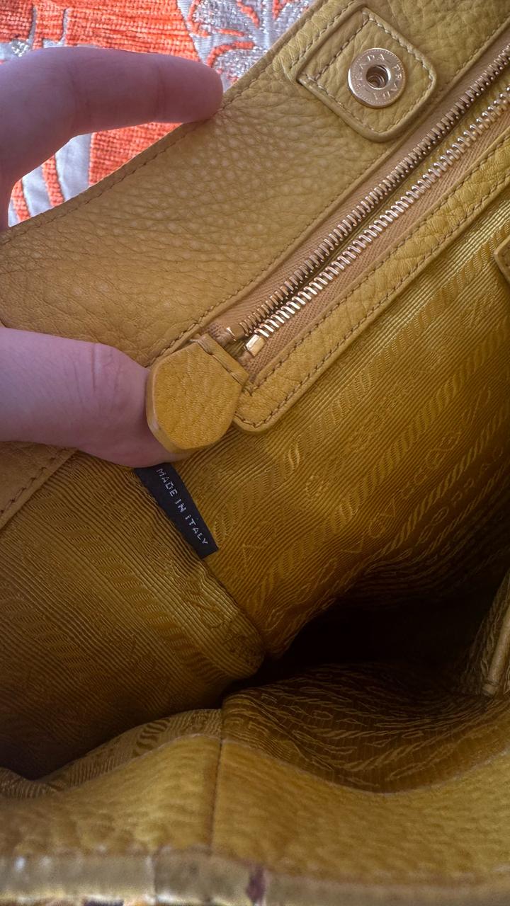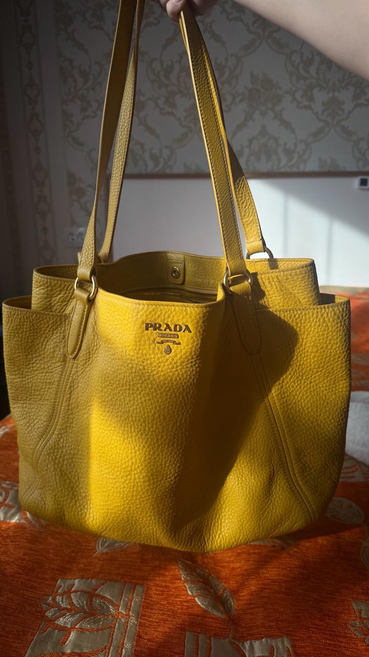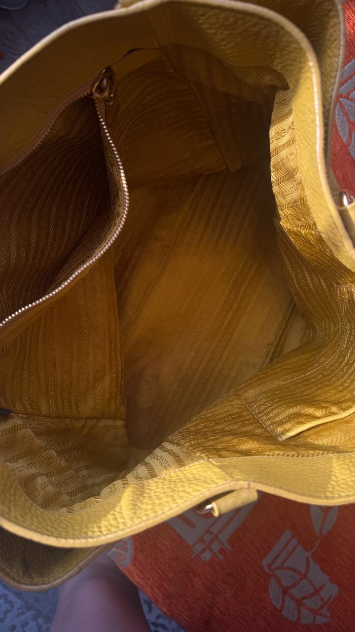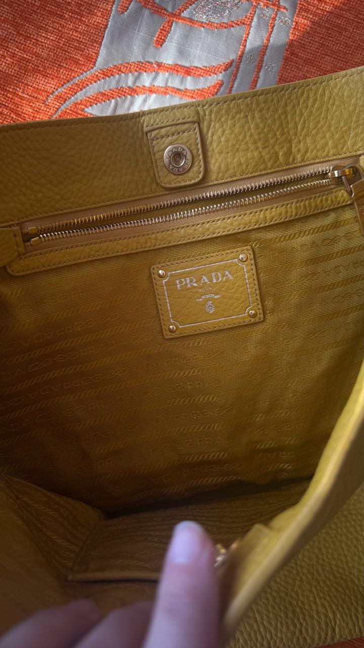 Желтая сумка Prada Vitello Daino . Оригинал, любимые проверки. Винтаж , коллекция 2006-2012 года. Цвет: горчично-желтый Очень стильная и вместительная. На весну и лето в самый раз. Артикул: 415817
