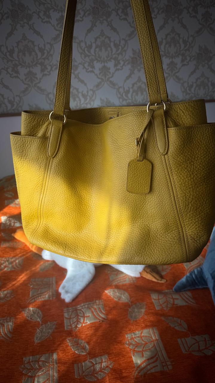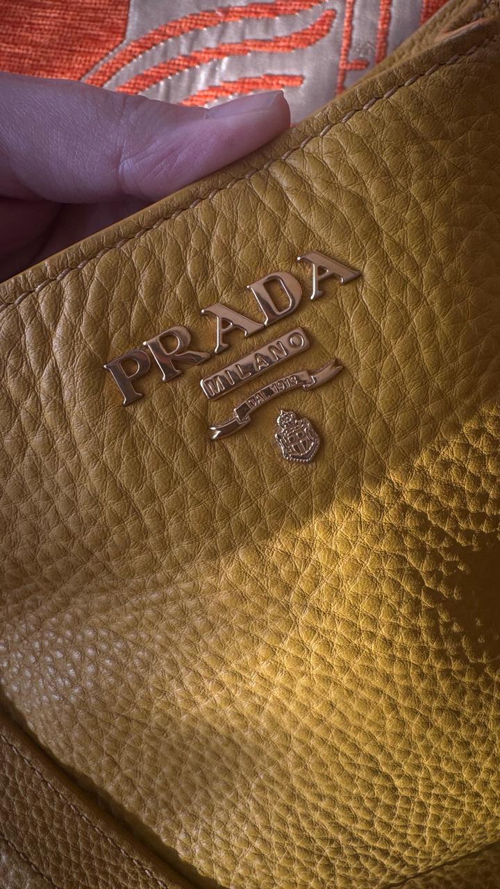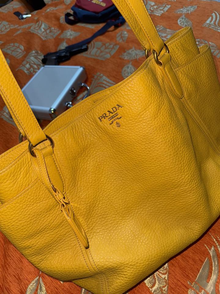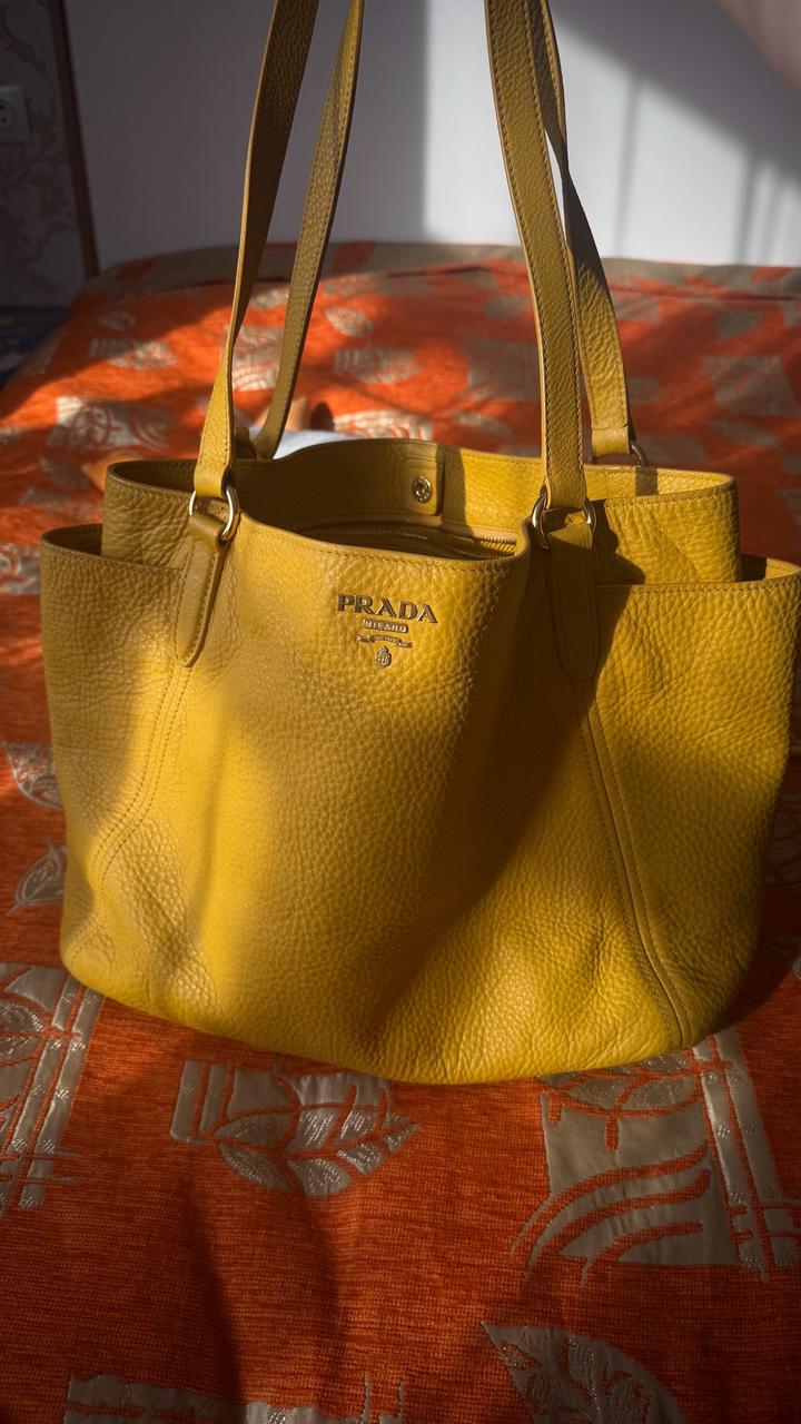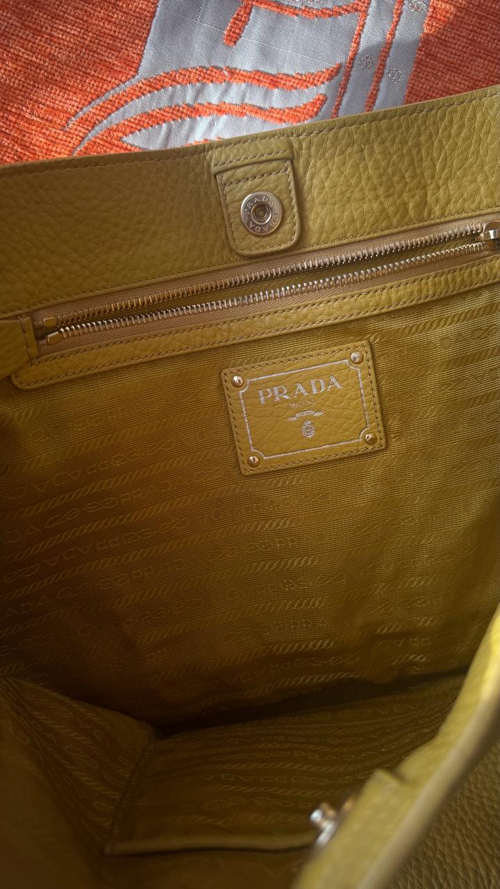 Желтая сумка Prada Vitello Daino . Оригинал, любимые проверки. Винтаж , коллекция 2006-2012 года. Цвет: горчично-желтый Очень стильная и вместительная. На весну и лето в самый раз. Артикул: 415817