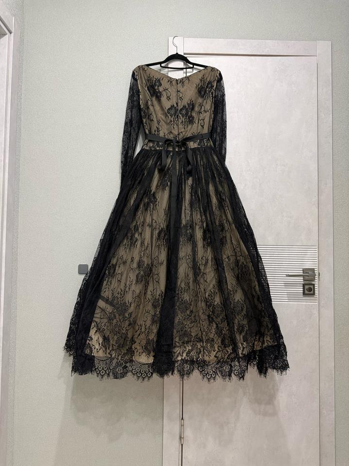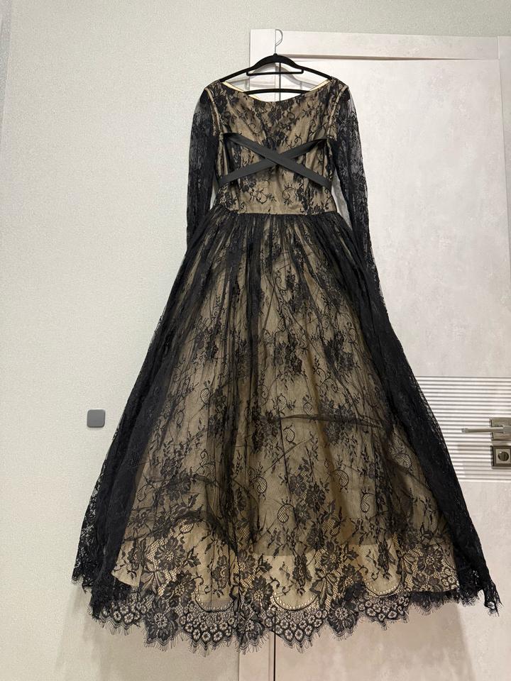 Черное платье пышное из французского кружева с этикеткой, без дефектов. Размер 48-50 Артикул: 415974