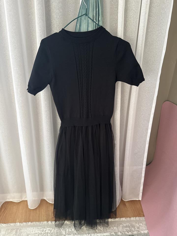 Черное платье Трикотаж+ сетка юбка Качество топ Артикул: 416317