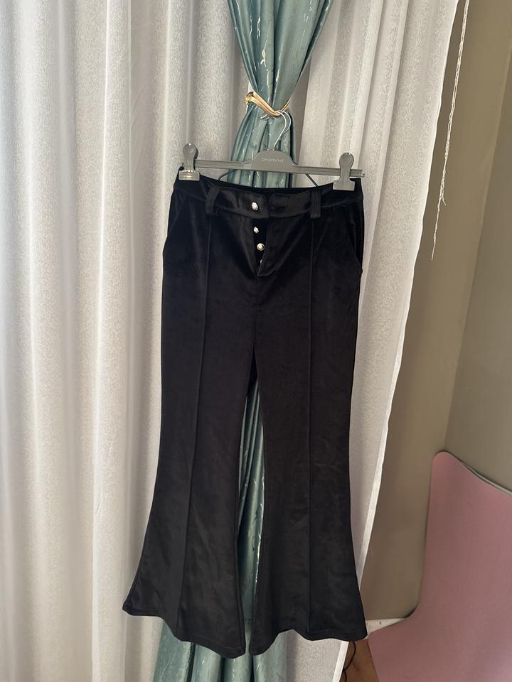 Черные брюки велюр клешM