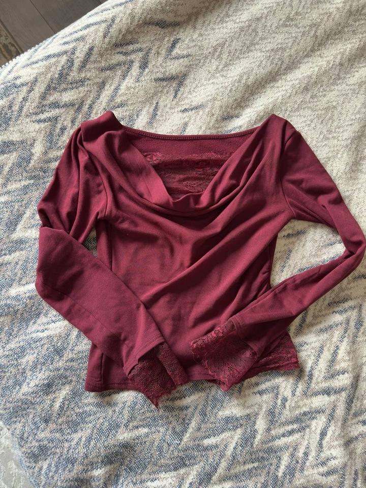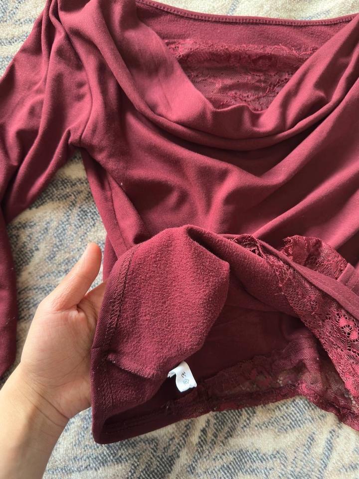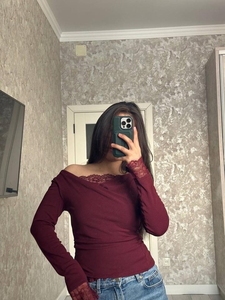 Бордовый лонгслив с кружевомS