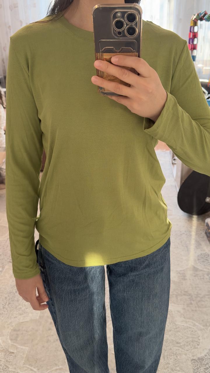Лонгслив в цвете хаки 💚. Новый. Есть в 💛🤍🩶💚🖤🤎 цветах. Подходит на S, M, L. Качество отличное 🔥 Артикул: 417495
