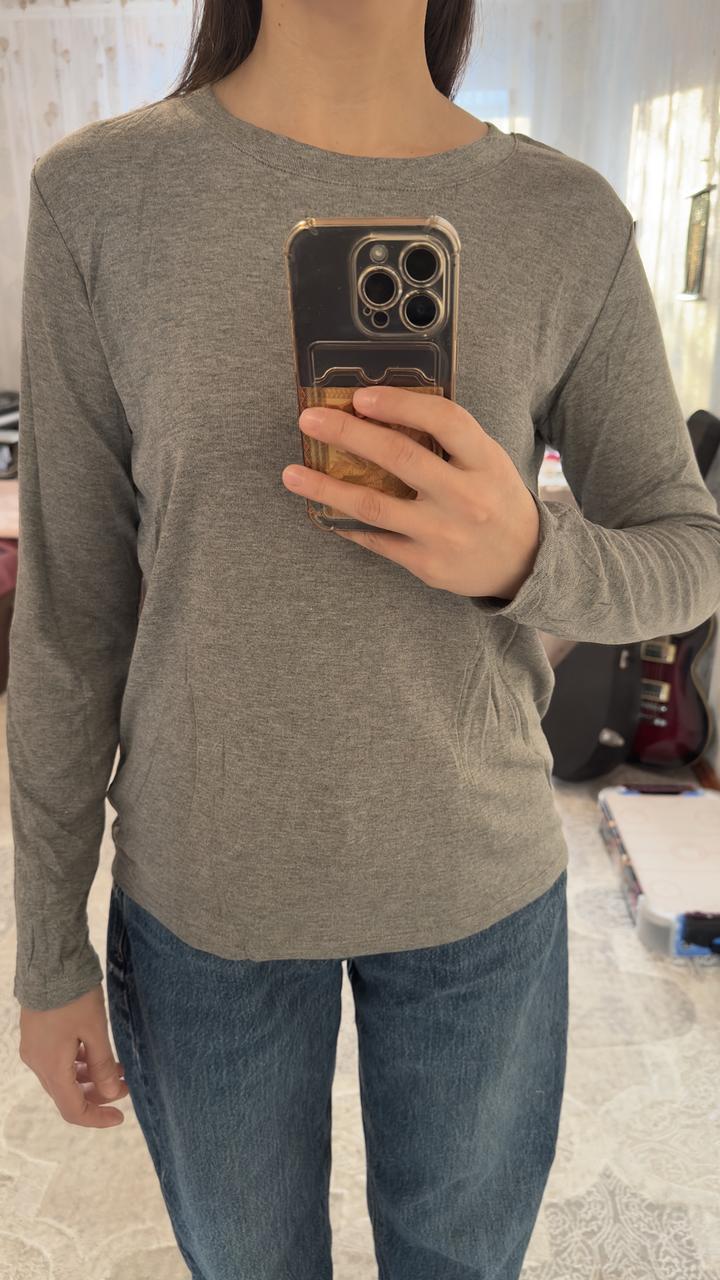 Лонгслив в сером цвете 🩶. Новый. Есть в 🖤💚🩶🤍🤎💛 цветах. Подходит на S, M, L. Качество отличное 🔥 Артикул: 417517