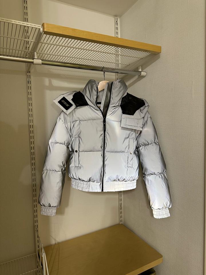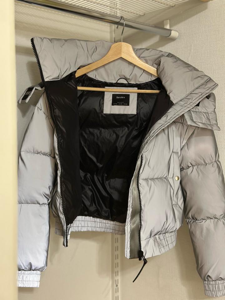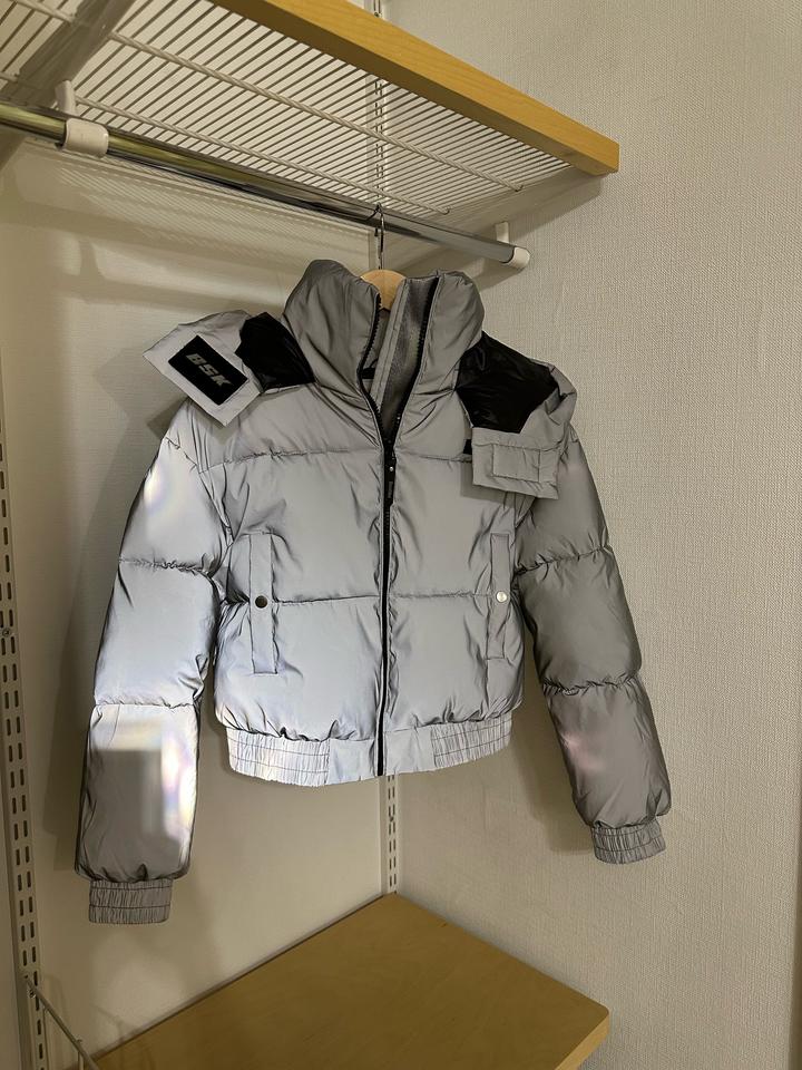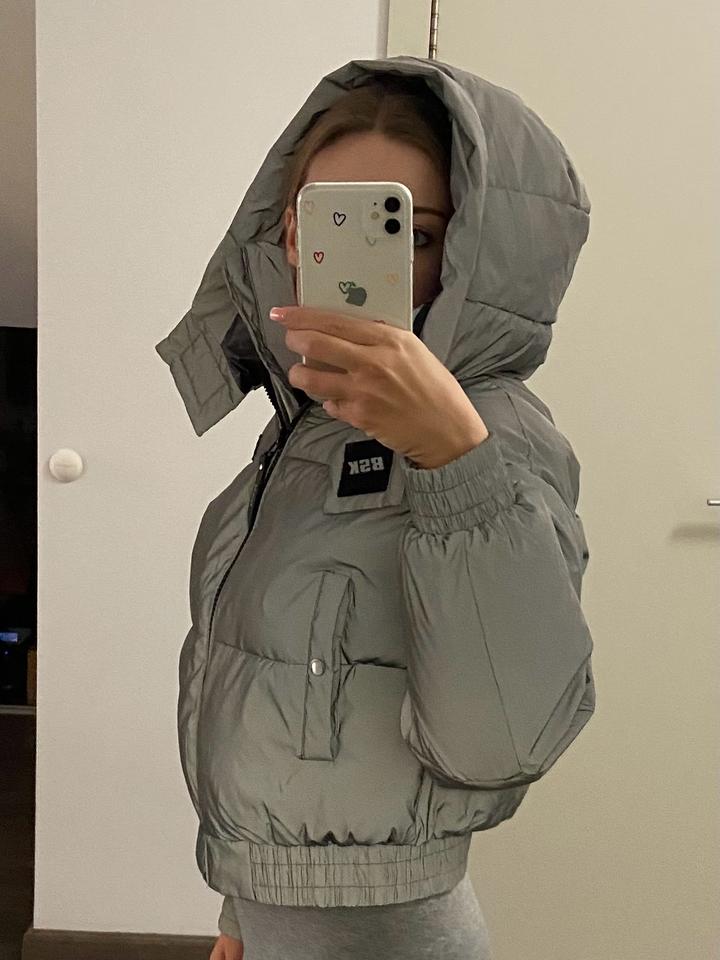 Светоотражающая укороченная куртка Bershka, размер XS – S. Состояние идеальное, ни разу не надевала. Есть небольшой дефект, видно на фото. На функционал никак не влияет. По всем вопросам пишите. Артикул: 417780