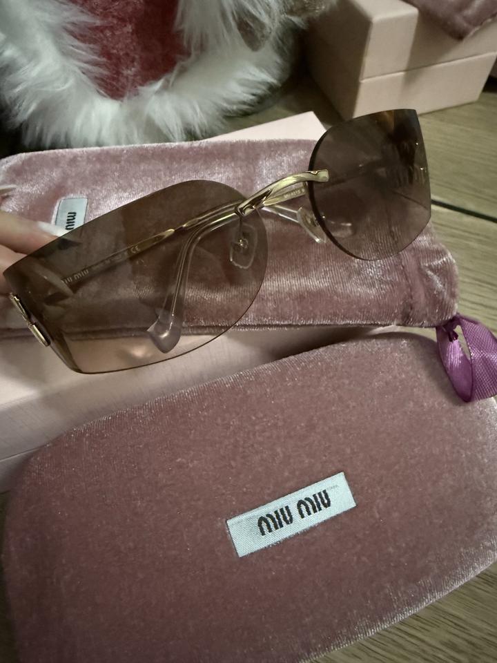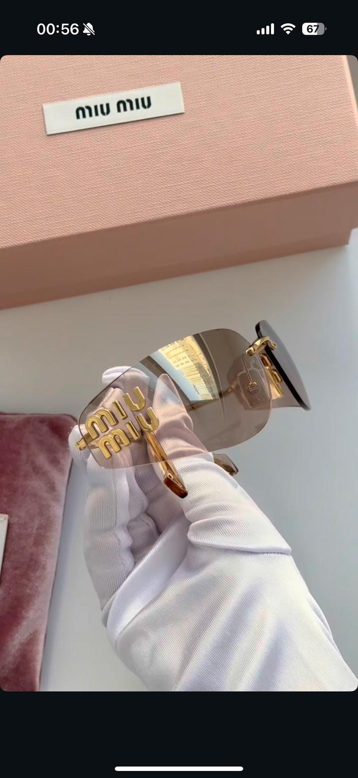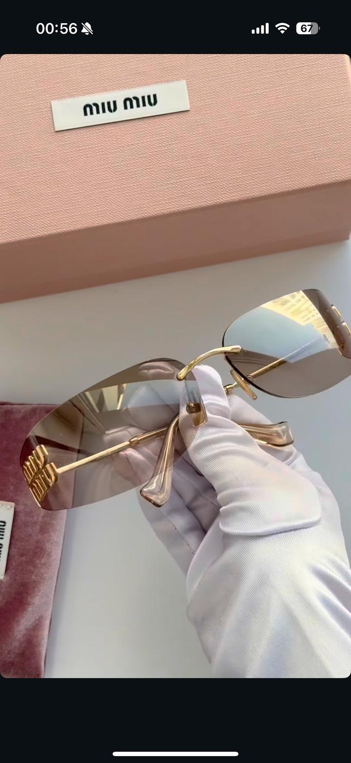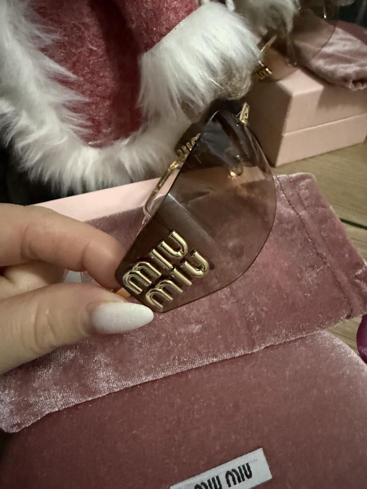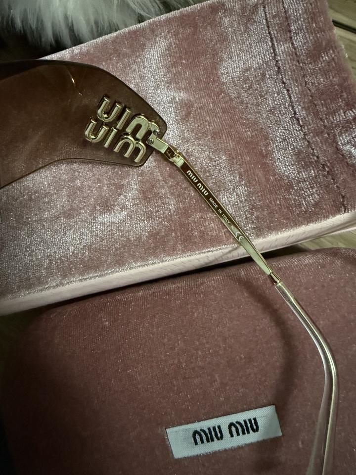 Miu Miu Eyewear солнцезащитные очки с логотипом Подробнее о товаре золотистый носоупоры прямые дужки дужки с закругленными концами В комплект входит защитный чехол для очков. Артикул: 418178