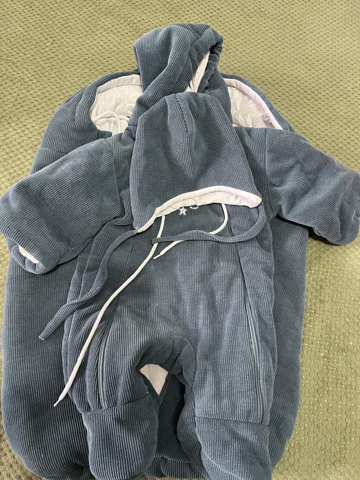 конверт на выписку из трех состоит шапка комбез и кокон цвет синий в нутри белый х/б, на весну самое то Артикул: 418272