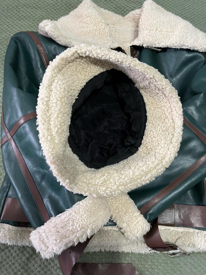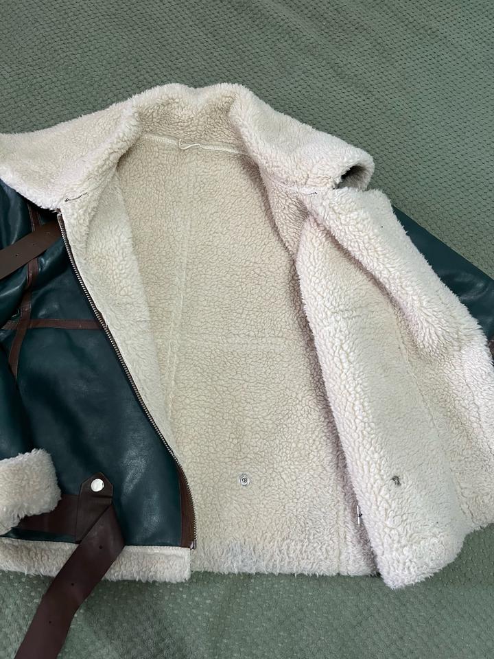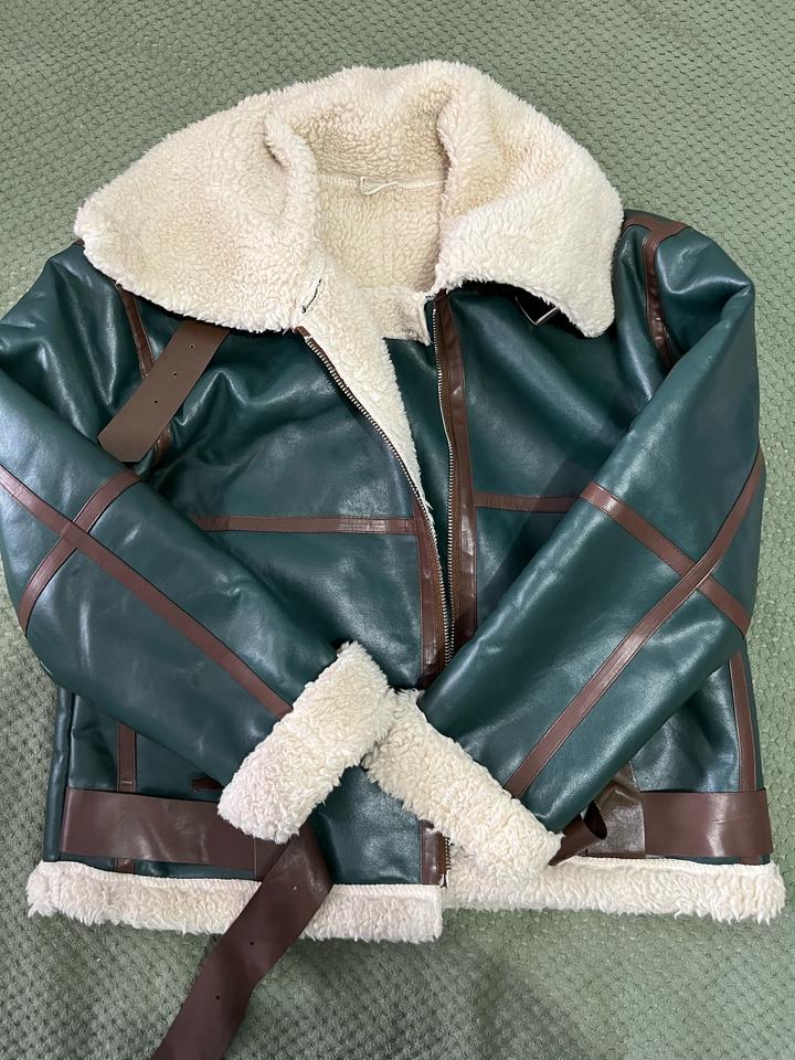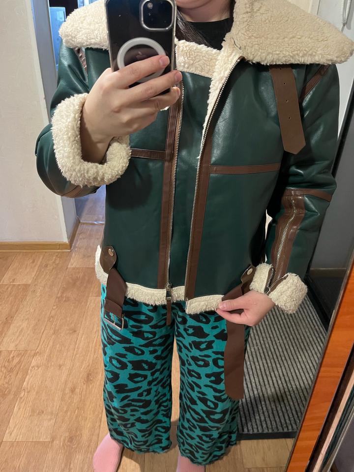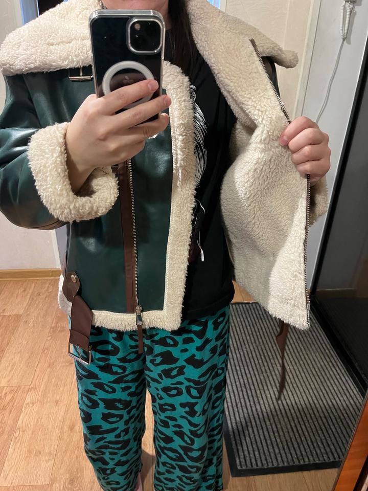 дубленка эко кожа, зеленая с коричневыми вставками, искуственный мех, размер М, в подарок отдам понамку Артикул: 418280