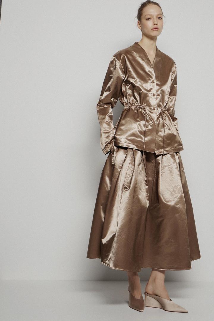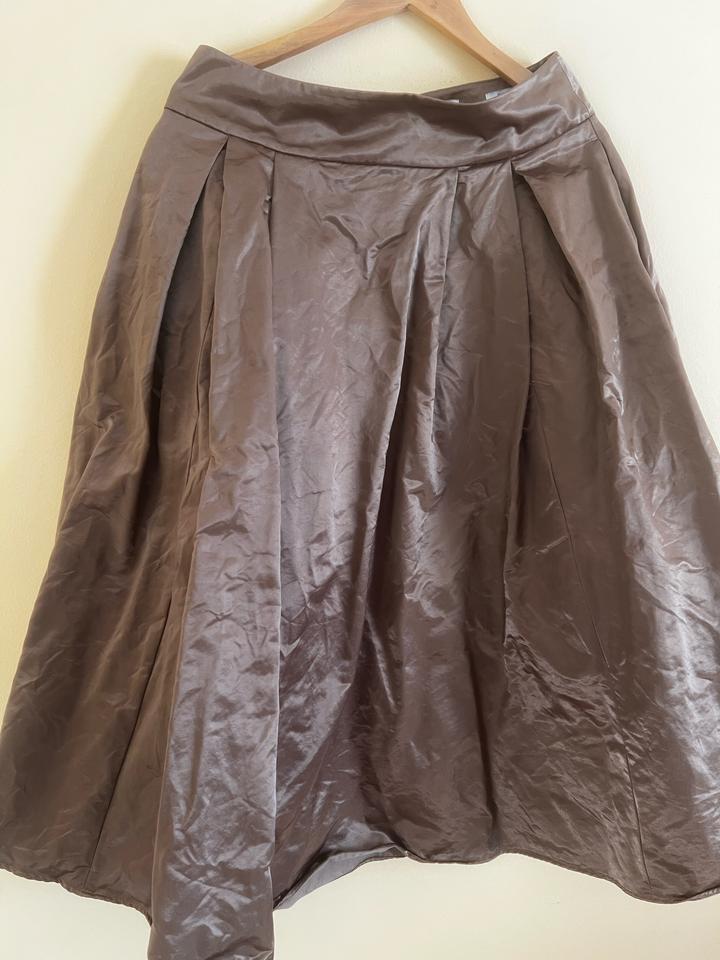Рубашка и юбка из плотной ткани. Держит форму, цвет бронзовый, очень красивый. Надевался 1 раз на мероприятие. Состояние как новое. Размер на бирке М, свободно подойдет на Л. Я ношу Л, заказала Л, но был очень большой, перезаказала М, сел идеально. Длина юбки миди. Подчеркивает талию, кулиска регулируется. Артикул: 418577