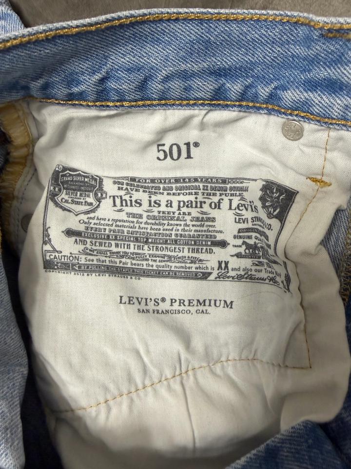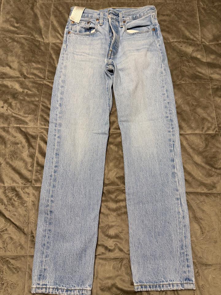Джинсы голубые хлопок. 501 levis. Покупала за 85.000тнг. Продам за 36.000тнг Размер 26 Прямые. Артикул: 418795