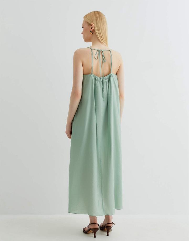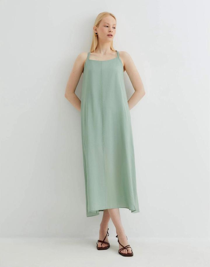 цвет Мятный. Под платьем есть подклад, в отличном состоянии, надевала 2 раза, разгружаю гардероб. Нужно отпаривать платье, гладить нельзя. осн. ткань: 80% вискоза, 20% полиамид; подкладка: 100% полиэстер. Артикул: 418831