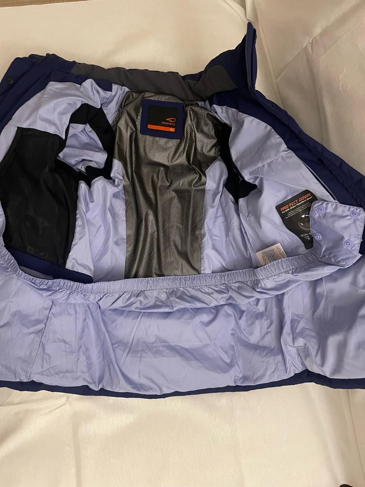 Горнолыжная куртка фиолетовая, размер 40-42 Отстегивается капюшон Очень качественная, легкая, на температуру от 0до -30 градусов Есть дефект на правом рукаве Артикул: 418970