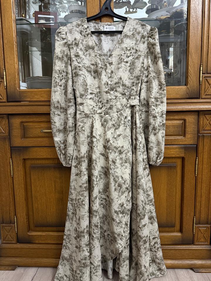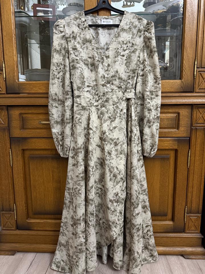 Платье на запах от магазина Cocowear. Покупала за 21 тыс.тенге. Надевалось всего один раз, состояние отличное. Размер не указан, подойдёт на XS,S,M, на L будет мало. Длина 115 см, талия 75, обхват груди 85-95 см. Артикул: 419017