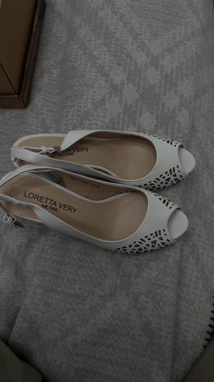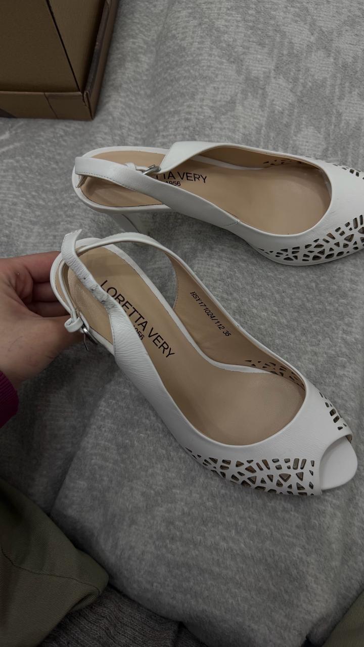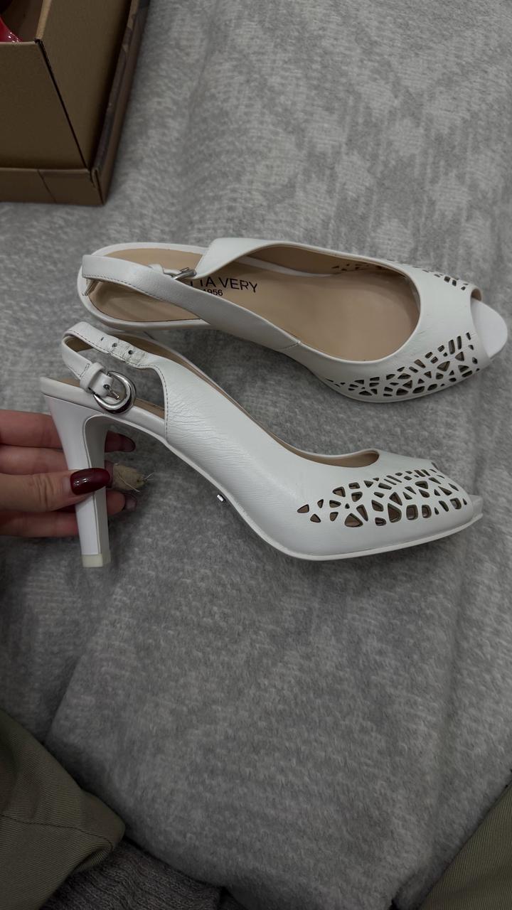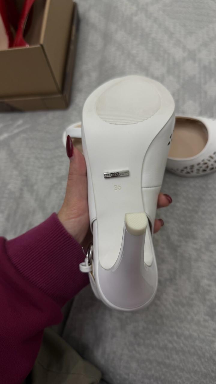 Белые туфли с перфорацией на каблуке Элегантные белые туфли из натуральной кожи с аккуратной перфорацией спереди. Лёгкие, женственные и очень аккуратно смотрятся на ноге. Удобный каблук средней высоты и ремешок с застёжкой надёжно фиксируют стопу. Идеально подойдут для свадьбы, никаха, фотосессии, мероприятий или как сменная обувь. ✨ Характеристики: • Цвет: белый • Материал: натуральная кожа • Декор: перфорация • Каблук: устойчивый • Застёжка: ремешок с пряжкой • Состояние: отличное Артикул: 419057