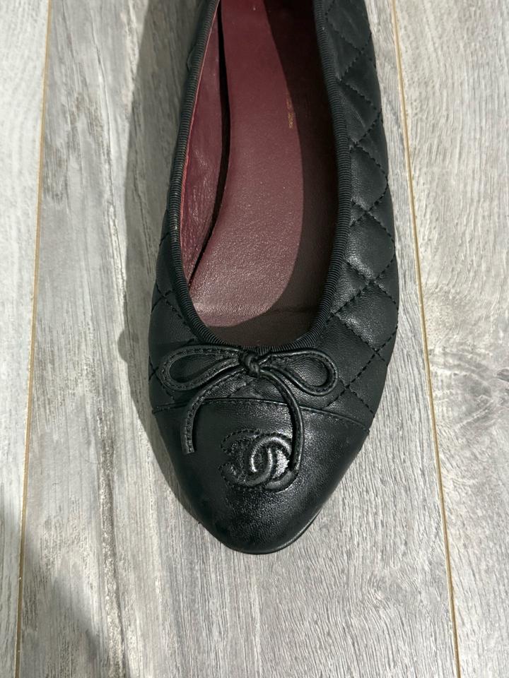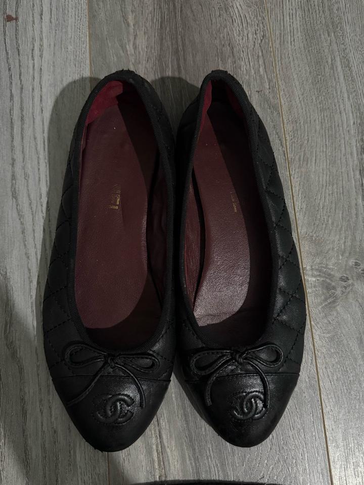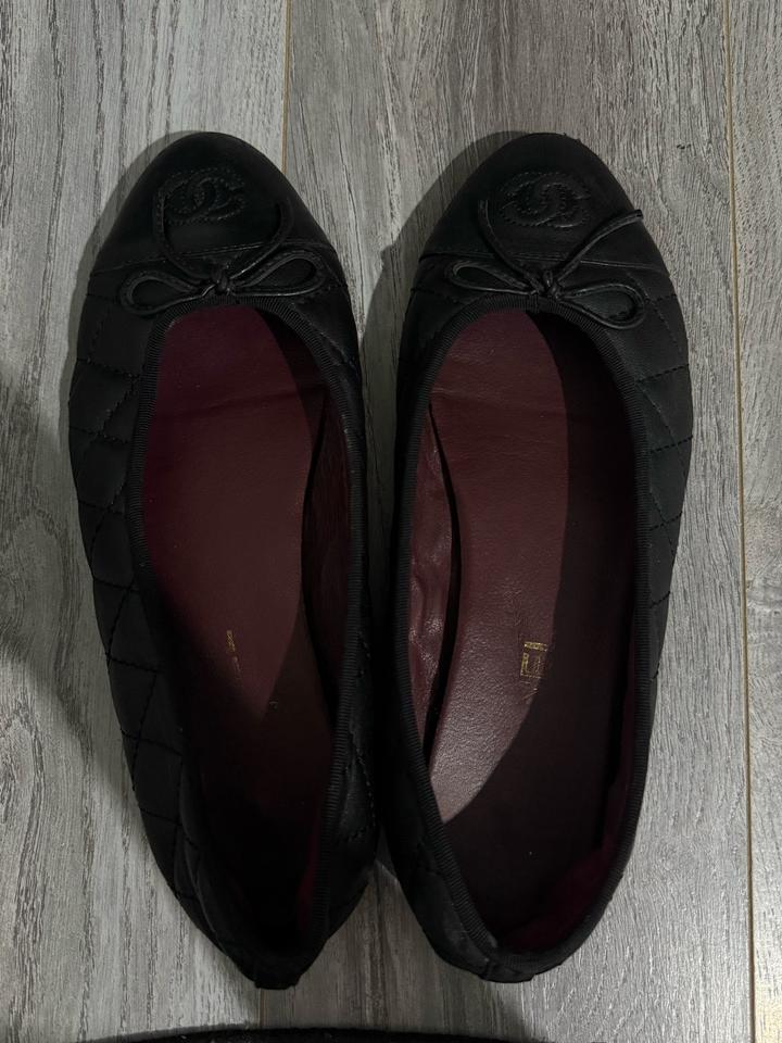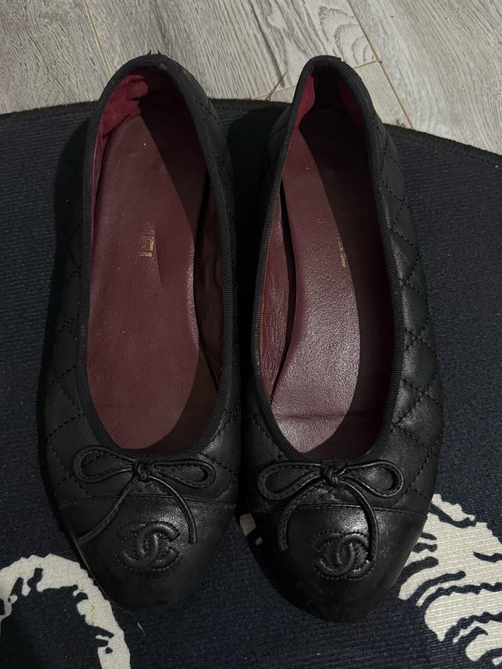 Балетки Chanel, чёрного цвета, размер 40С выполнены из натуральной кожи высокого качества. • Материал верха: натуральная телячья/ягнёнковая кожа • Цвет: чёрный, классический • Подошва: плоская • Фирменные детали: логотип Chanel на внутренней части обуви, оригинальная форма носка • Состояние: б/у, в целом в хорошем состоянии; внутри есть лёгкие потертости на надписи • Комплектация: без коробки, только сами балетки У меня размер 38-39 отлично подойдут Артикул: 420164