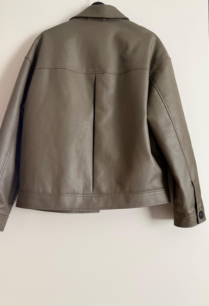 Мужская кожаная(эко) куртка Zara в размере S. Цвет Хаки Артикул: 420669