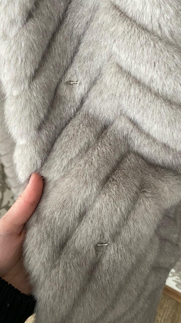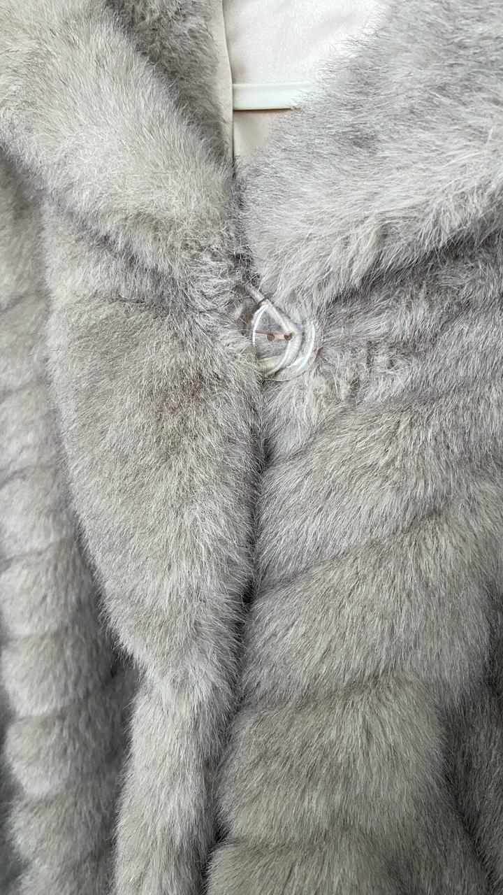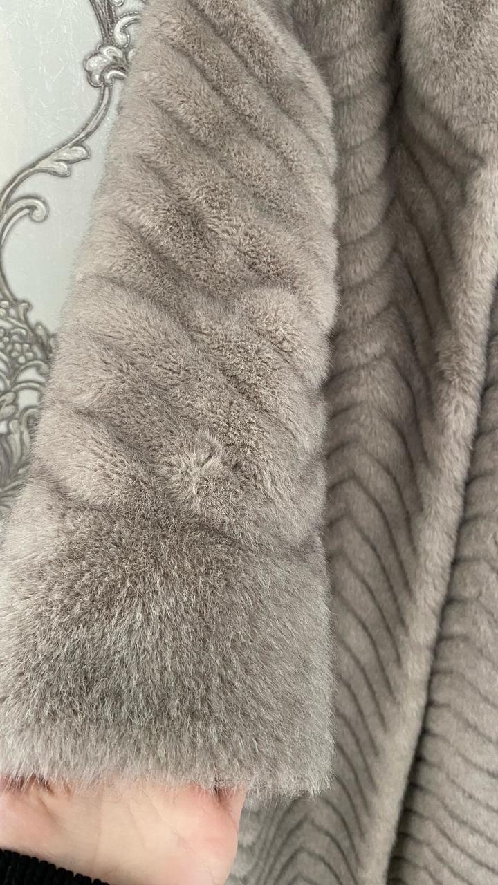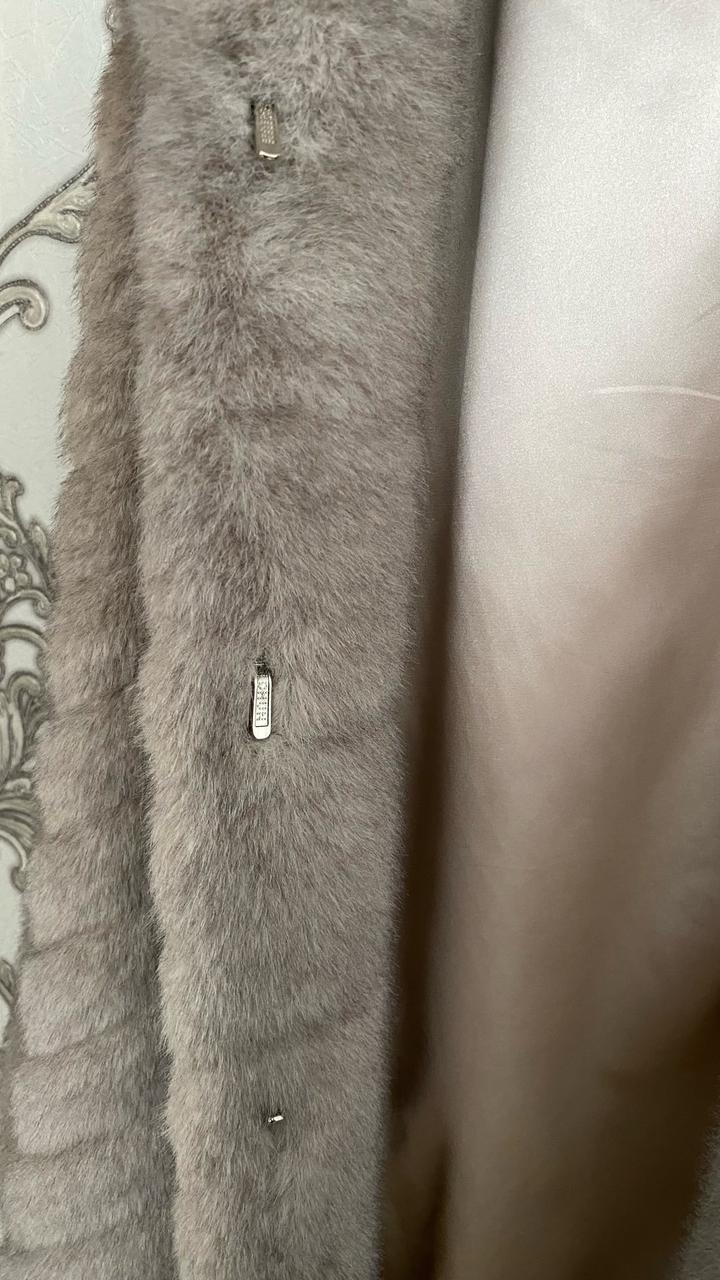 искусственный мех, есть капюшон и пояс, по бокам разрезы размер 48, длина по спинке 122 см Артикул: 420714