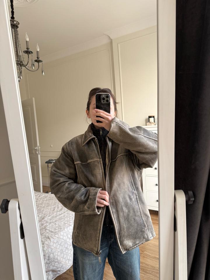 Суперская дубленка, очень теплая. Покупалась в 2023 году в винтажном магазине за границей. Натуральная кожа. Мужской XL, поэтому подойдет всем. Мой рост 155см, размер XS-S. В отличном состоянии, из дефектов только воротник потрескался немного, стал жестковатым, но в носке не мешает и не видно Артикул: 420805