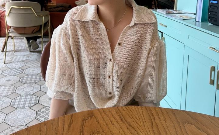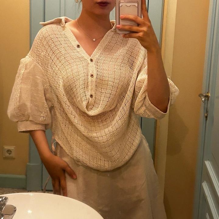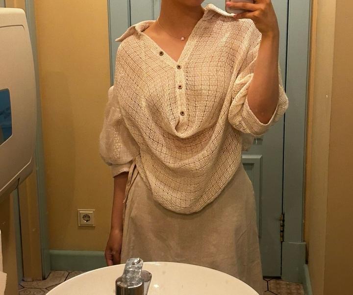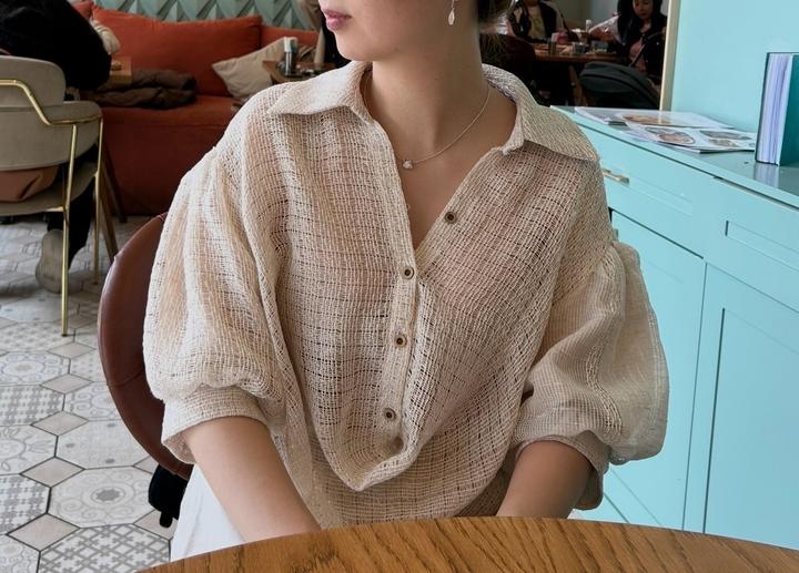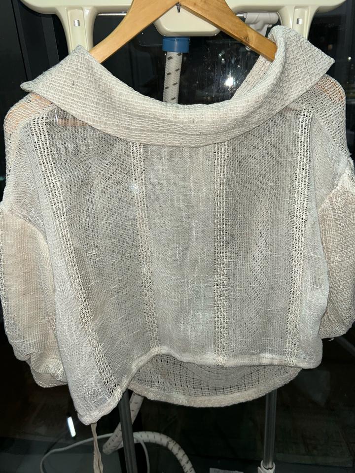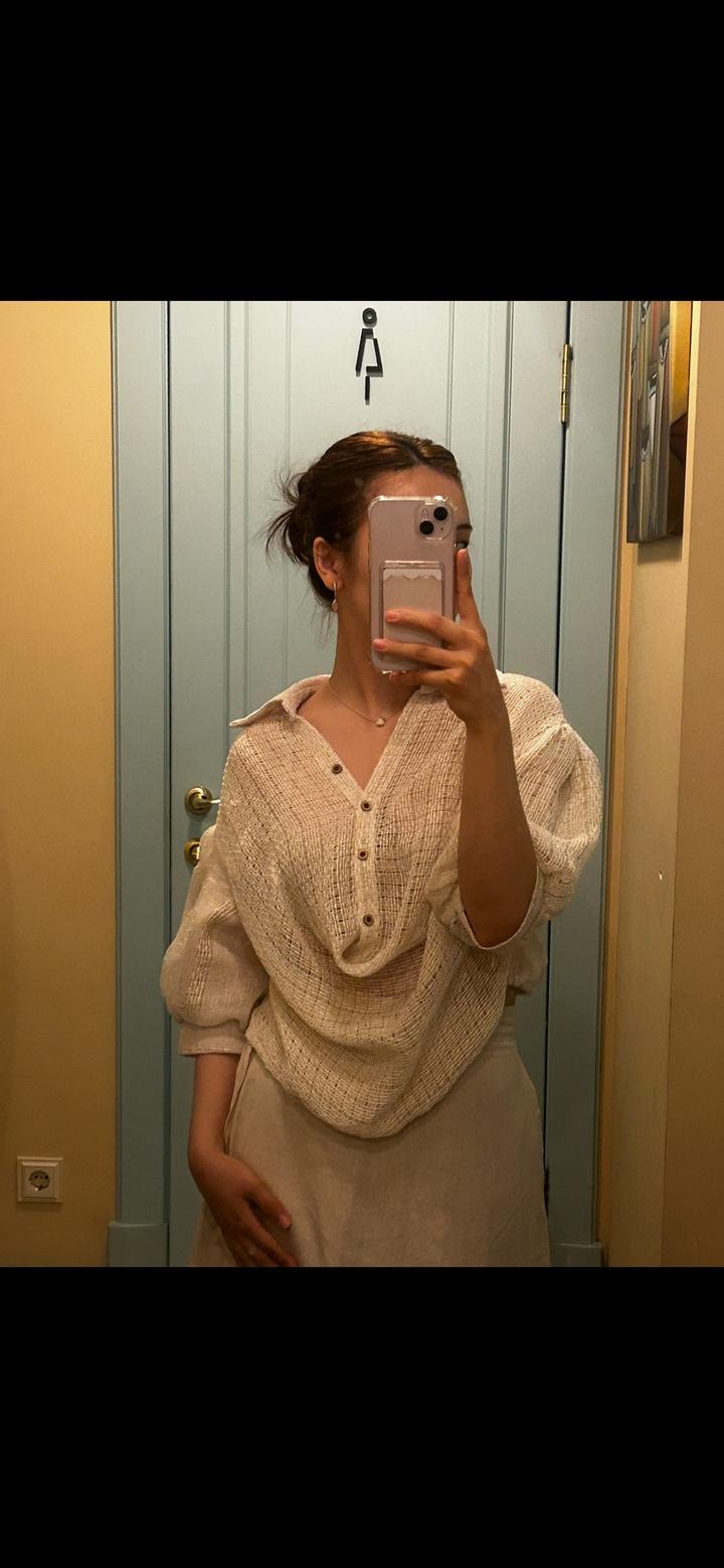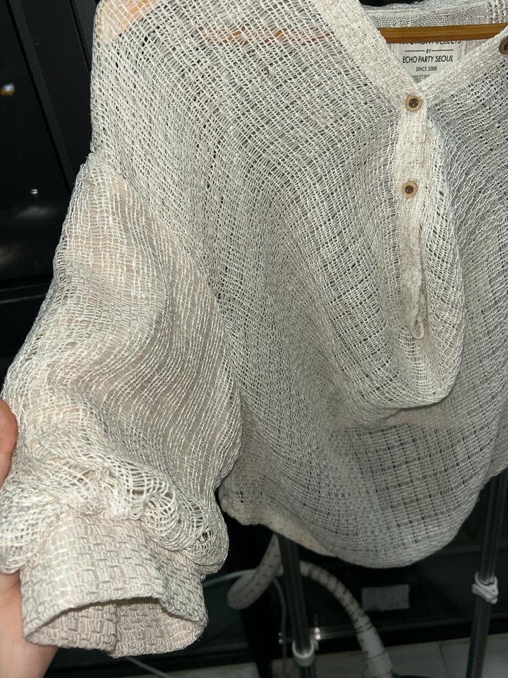 Лёгкая полупрозрачная блуза из фактурной сетчатой ткани. Свободный крой, V-образный вырез на пуговицах, укороченный силуэт с мягкой драпировкой. Воздушная и стильная — идеально для летних образов и layering’а. Артикул: 421111