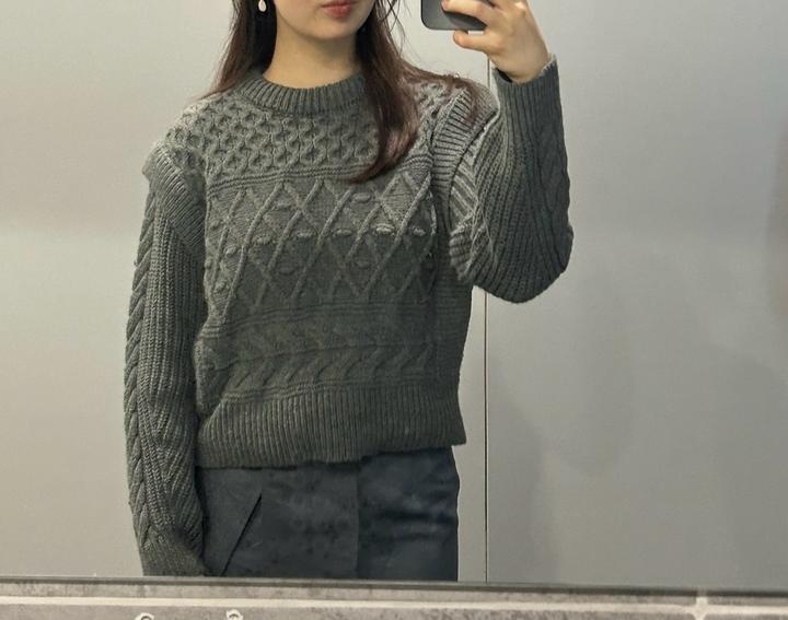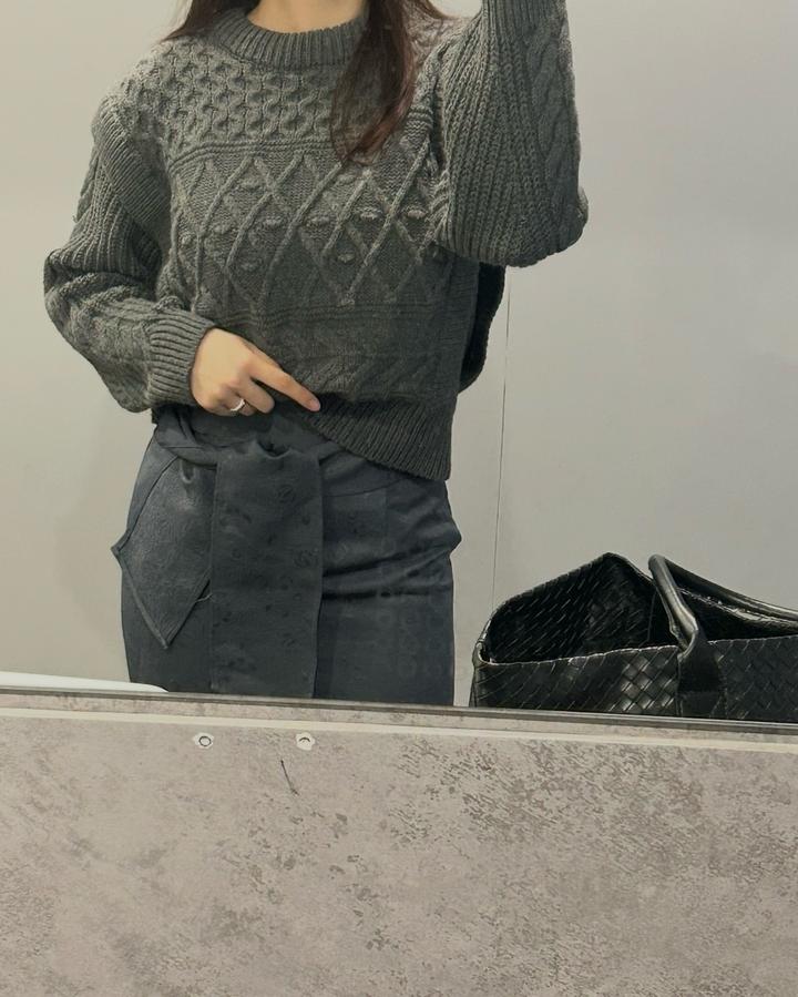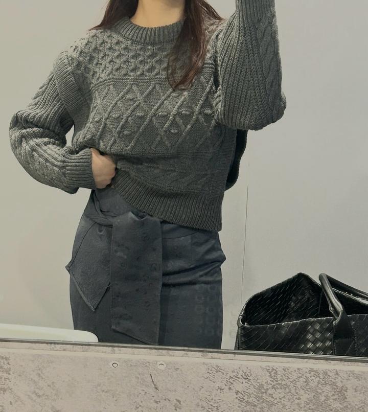 Укороченный вязаный свитер тёмно-серого цвета. Плотная фактурная вязка с узором, круглый ворот и длинные рукава. Тёплый, стильный и удобный – отлично подойдёт для повседневных зимних образов. Юбка в азиатском стиле также продается (в профиле) Артикул: 421128