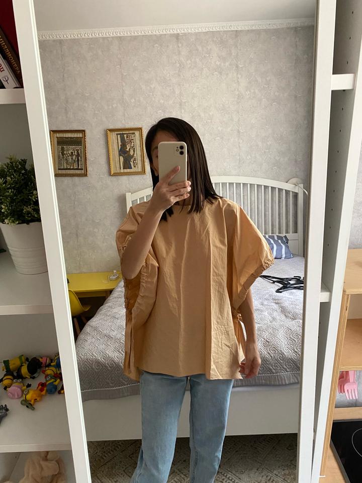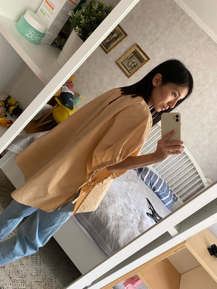 Блузка зара, очень стильная и необычная. Цвет бежевый, но ближе к персиковому. Размер С. Состояние идеальное Артикул: 421299