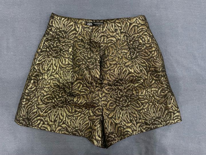 Шорты золотистые ZARA. Размер М. Лимитированная коллекция. Высокая посадка. Очень красивые по фигуре. носила один раз всего. Как новые, только бирки не хватает. Отличное качество. Размер мне больше не подходит. Артикул: 421457