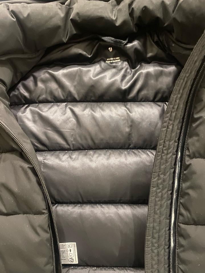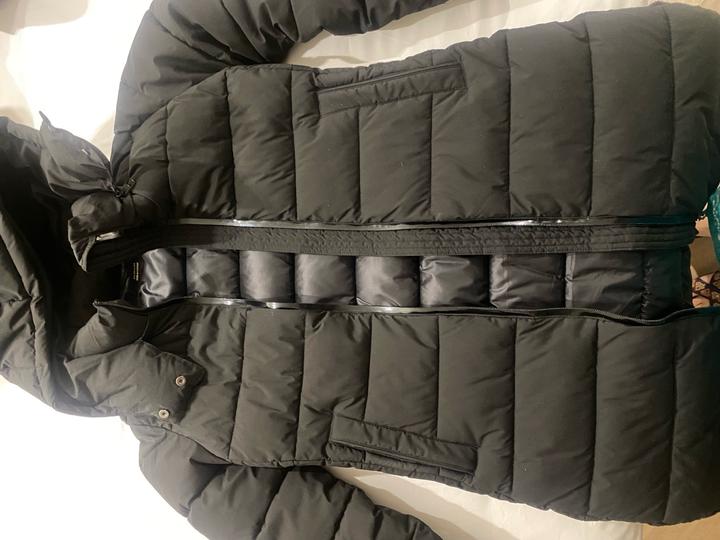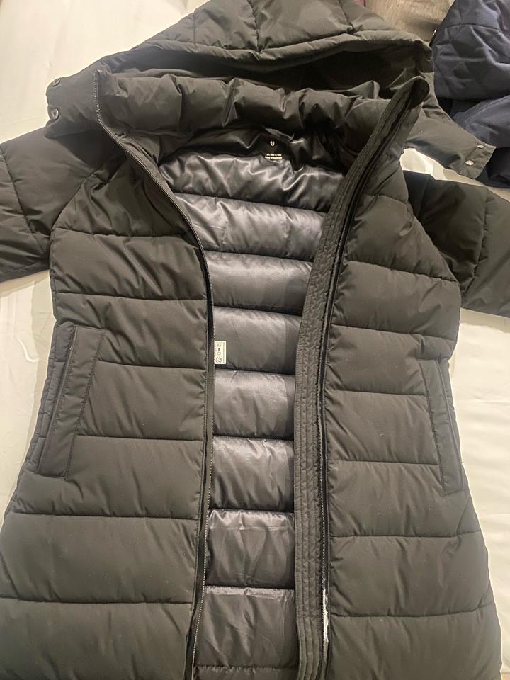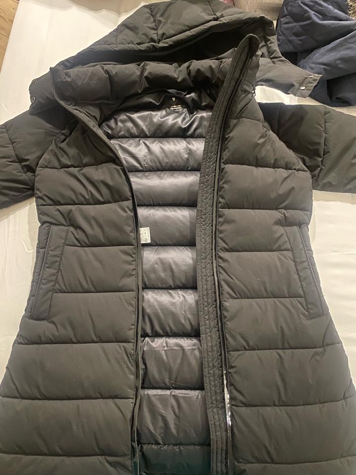 Черный анорак, до колена, покупали этой зимой, одевали, но аккуратно, очень теплый, в -35 спокойно, качественный и классический пуховик, подойдет как на S/M худеньким, рост 160-168, отшив Бангладеш Артикул: 421493