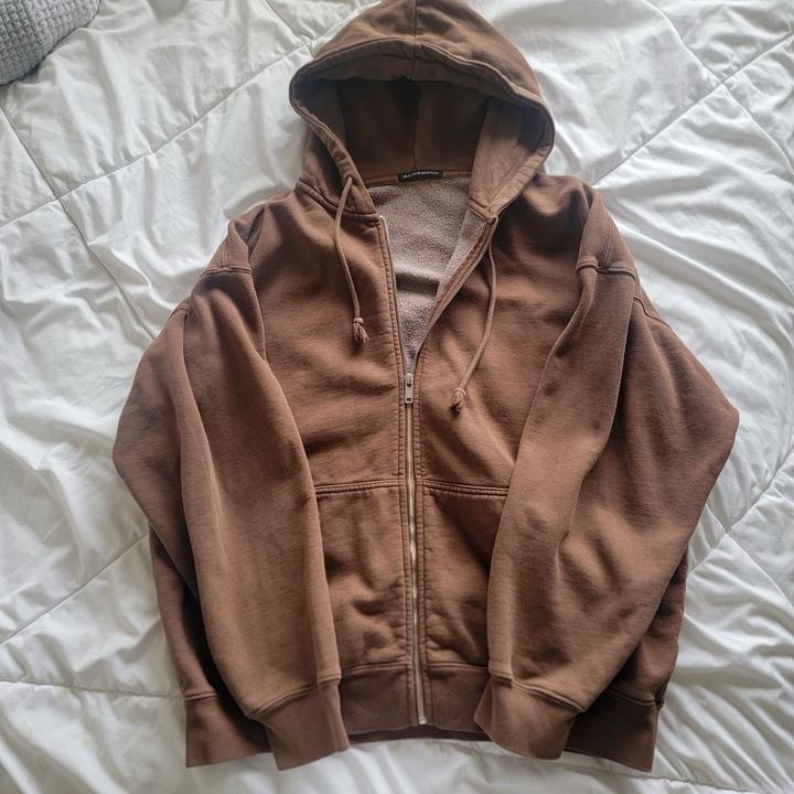 Коричневое оверсайз зип-худи, размер Xs-M но подойдет как стандарт, хорошего качества и держит форму, можно на любое время года Артикул: 421696